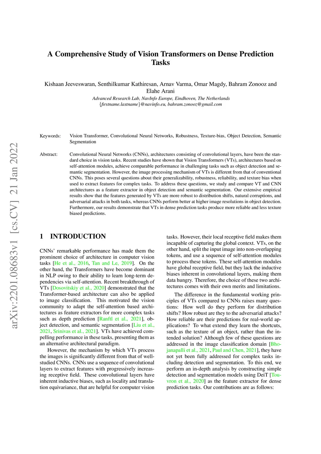 Convolutional Neural Networks (CNNs), architectures consisting of convolutional layers, have been the standard choice in vision tasks. Recent studies have shown that Vision Transformers (VTs), architectures based on self-attention modules, achieve comparable performance in challenging tasks such as object detection and semantic segmentation. However, the image processing mechanism of VTs is different from that of conventional CNNs. This poses several questions about their generalizability, robustness, reliability, and texture bias when used to extract features for complex tasks. To address these questions, we study and compare VT and CNN architectures as feature extractors in object detection and semantic segmentation. Our extensive empirical results show that the features generated by VTs are more robust to distribution shifts, natural corruptions, and adversarial attacks in both tasks, whereas CNNs perform better at higher image resolutions in object detection. Furthermore, our results demonstrate that VTs in dense prediction tasks produce more reliable and less texture-biased predictions.