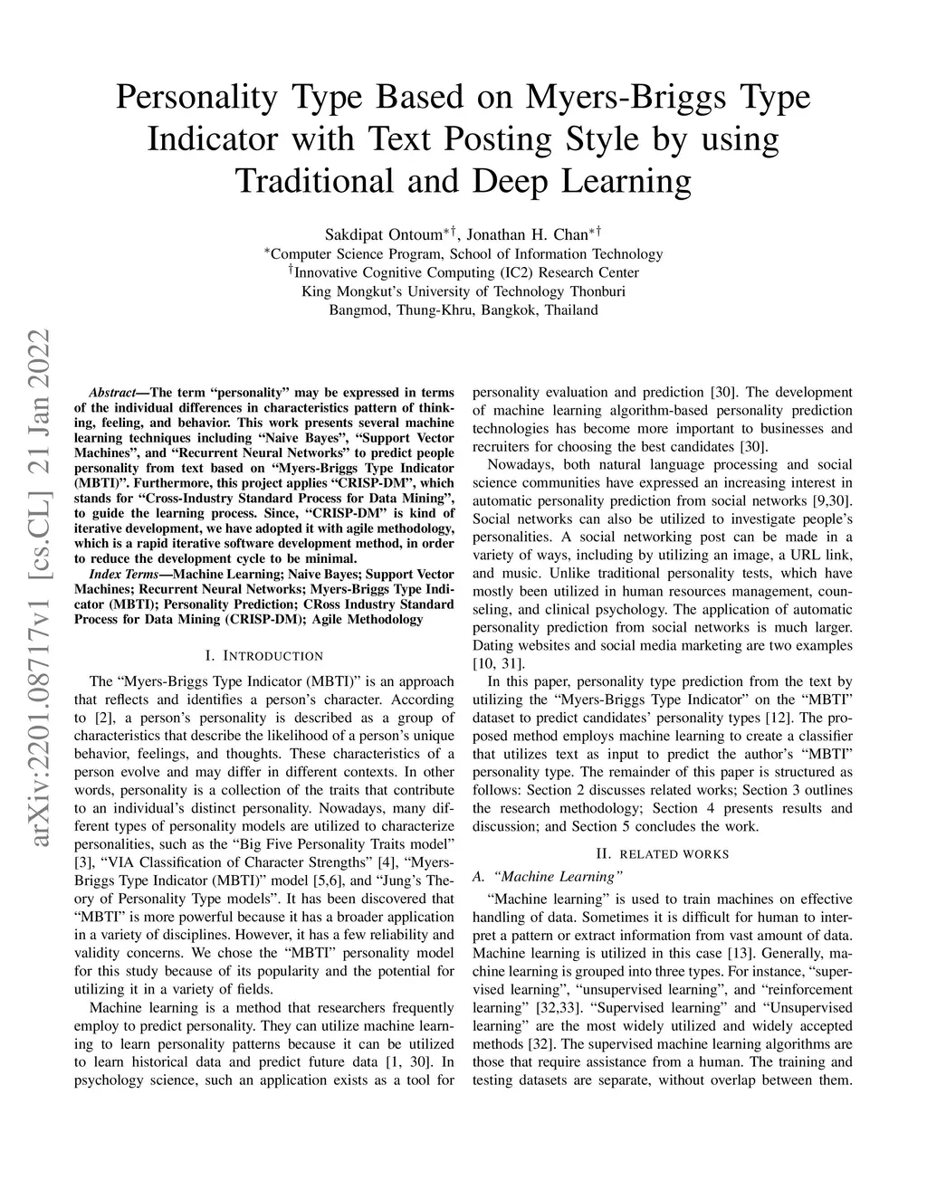 Personality Type Based on Myers-Briggs Type Indicator with Text Posting