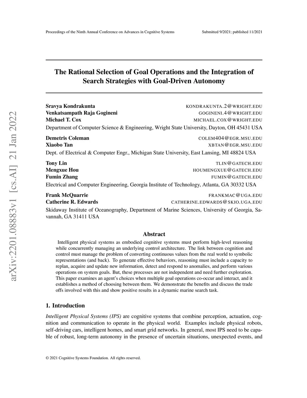Intelligent physical systems as embodied cognitive systems must perform high-level reasoning while concurrently managing an underlying control architecture. The link between cognition and control must manage the problem of converting continuous values from the real world to symbolic representations (and back). To generate effective behaviors, reasoning must include a capacity to replan, acquire and update new information, detect and respond to anomalies, and perform various operations on system goals. But, these processes are not independent and need further exploration. This paper examines an agent's choices when multiple goal operations co-occur and interact, and it establishes a method of choosing between them. We demonstrate the benefits and discuss the trade offs involved with this and show positive results in a dynamic marine search task.