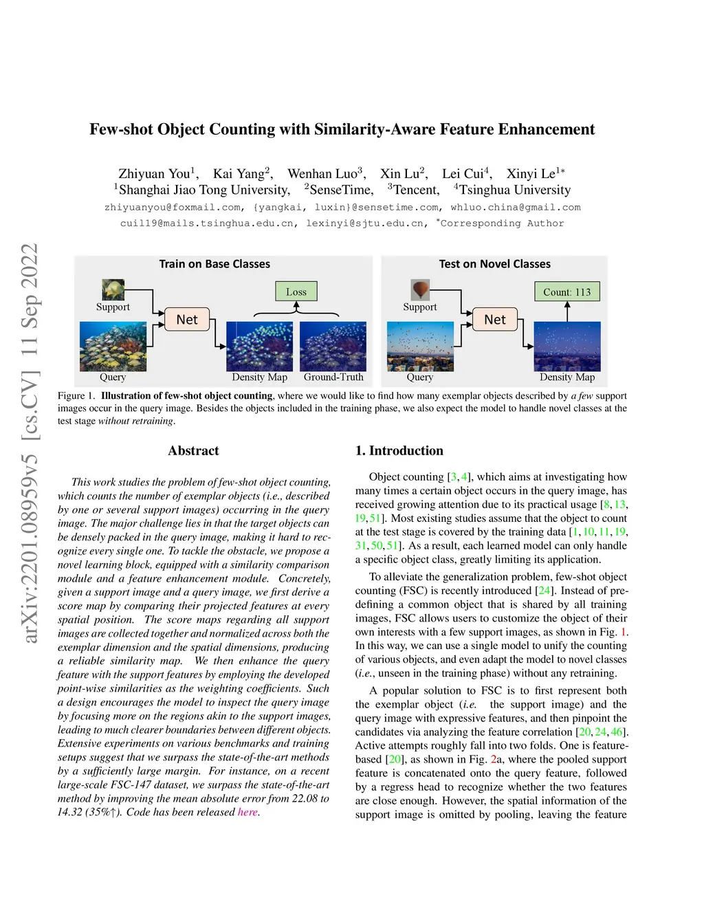 Few-shot Object Counting with Similarity-Aware Feature Enhancement