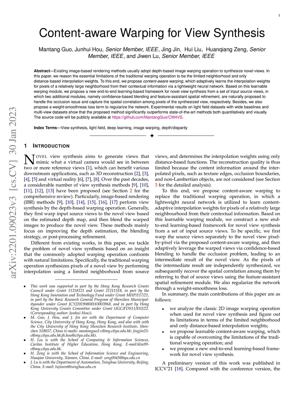 Content-aware Warping for View Synthesis