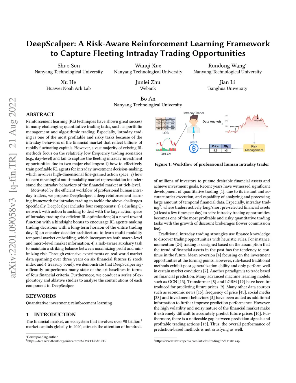 DeepScalper: A Risk-Aware Reinforcement Learning Framework to Capture