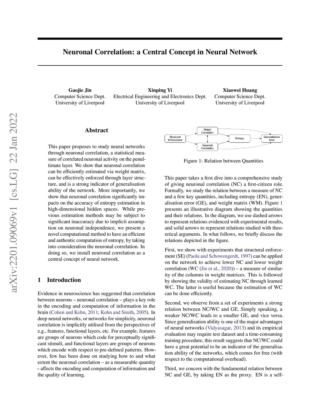 This paper proposes to study neural networks through neuronal correlation, a statistical measure of correlated neuronal activity on the penultimate layer. We show that neuronal correlation can be efficiently estimated via weight matrix, can be effectively enforced through layer structure, and is a strong indicator of generalisation ability of the network. More importantly, we show that neuronal correlation significantly impacts on the accuracy of entropy estimation in high-dimensional hidden spaces. While previous estimation methods may be subject to significant inaccuracy due to implicit assumption on neuronal independence, we present a novel computational method to have an efficient and authentic computation of entropy, by taking into consideration the neuronal correlation. In doing so, we install neuronal correlation as a central concept of neural network.