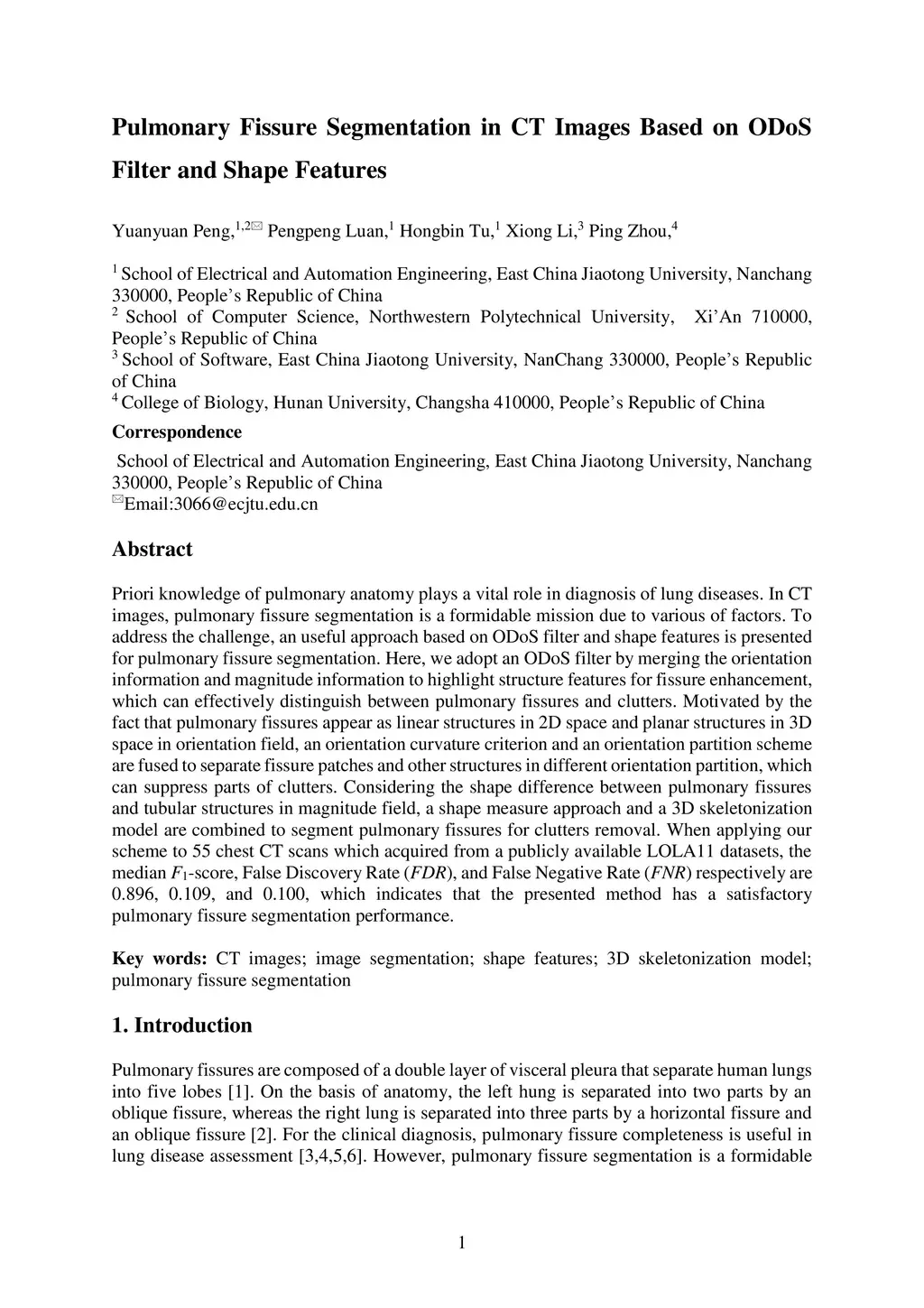 Pulmonary Fissure Segmentation in CT Images Based on ODoS Filter and