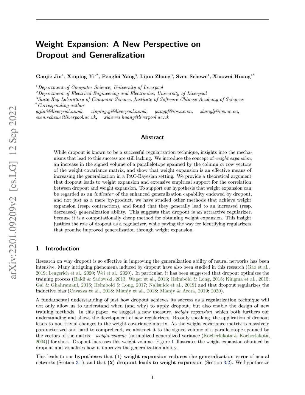 Weight Expansion: A New Perspective on Dropout and Generalization
