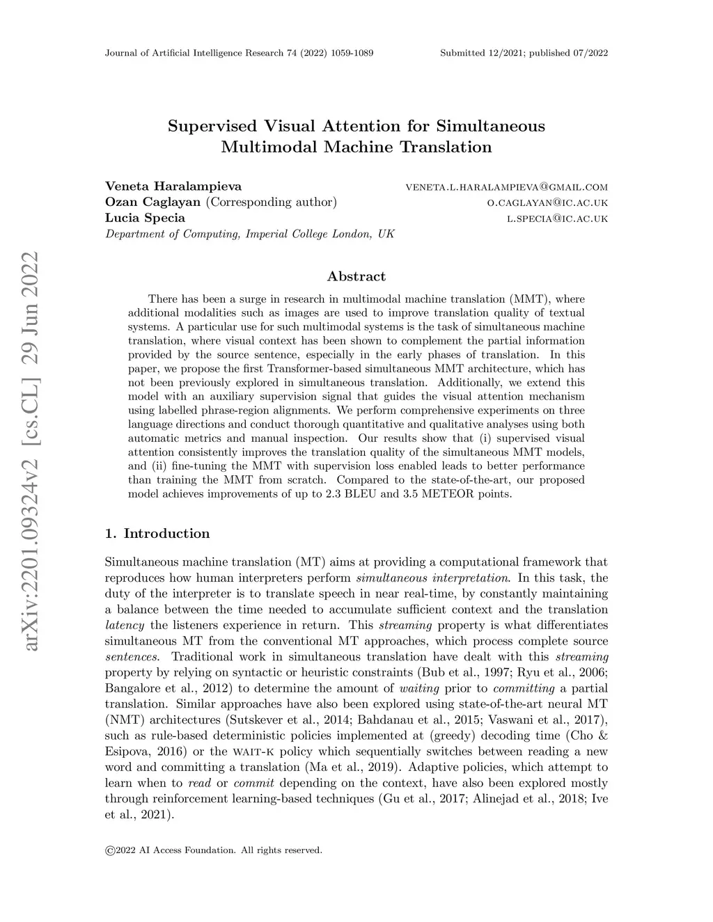 Supervised Visual Attention for Simultaneous Multimodal Machine