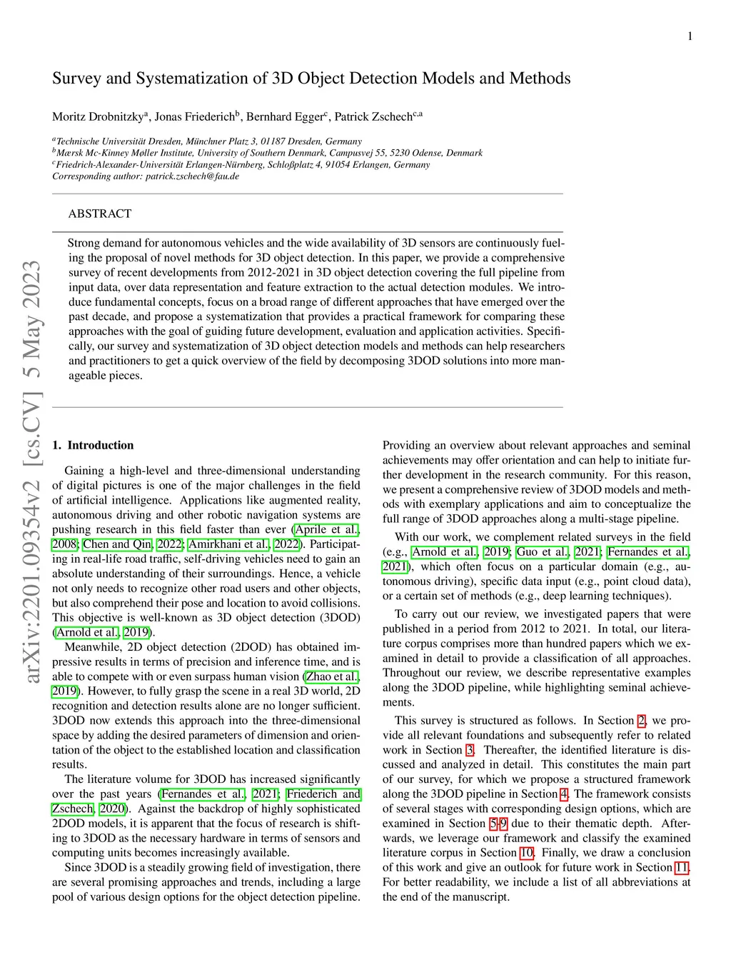 Strong demand for autonomous vehicles and the wide availability of 3D sensors are continuously fueling the proposal of novel methods for 3D object detection. In this paper, we provide a comprehensive survey of recent developments from 2012-2021 in 3D object detection covering the full pipeline from input data, over data representation and feature extraction to the actual detection modules. We introduce fundamental concepts, focus on a broad range of different approaches that have emerged over the past decade, and propose a systematization that provides a practical framework for comparing these approaches with the goal of guiding future development, evaluation and application activities. Specifically, our survey and systematization of 3D object detection models and methods can help researchers and practitioners to get a quick overview of the field by decomposing 3DOD solutions into more manageable pieces.