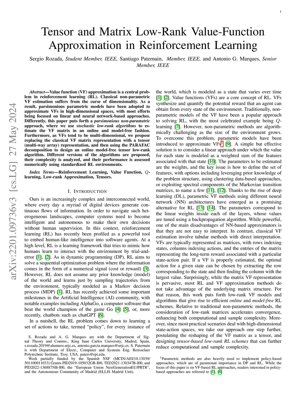 Tensor and Matrix Low-Rank Value-Function Approximation in Reinforcement