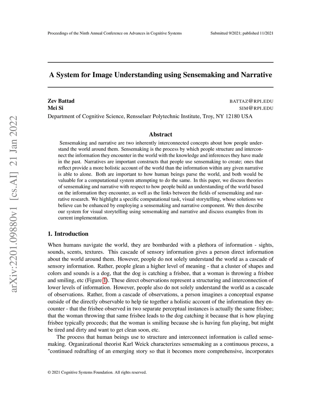 A System for Image Understanding using Sensemaking and Narrative