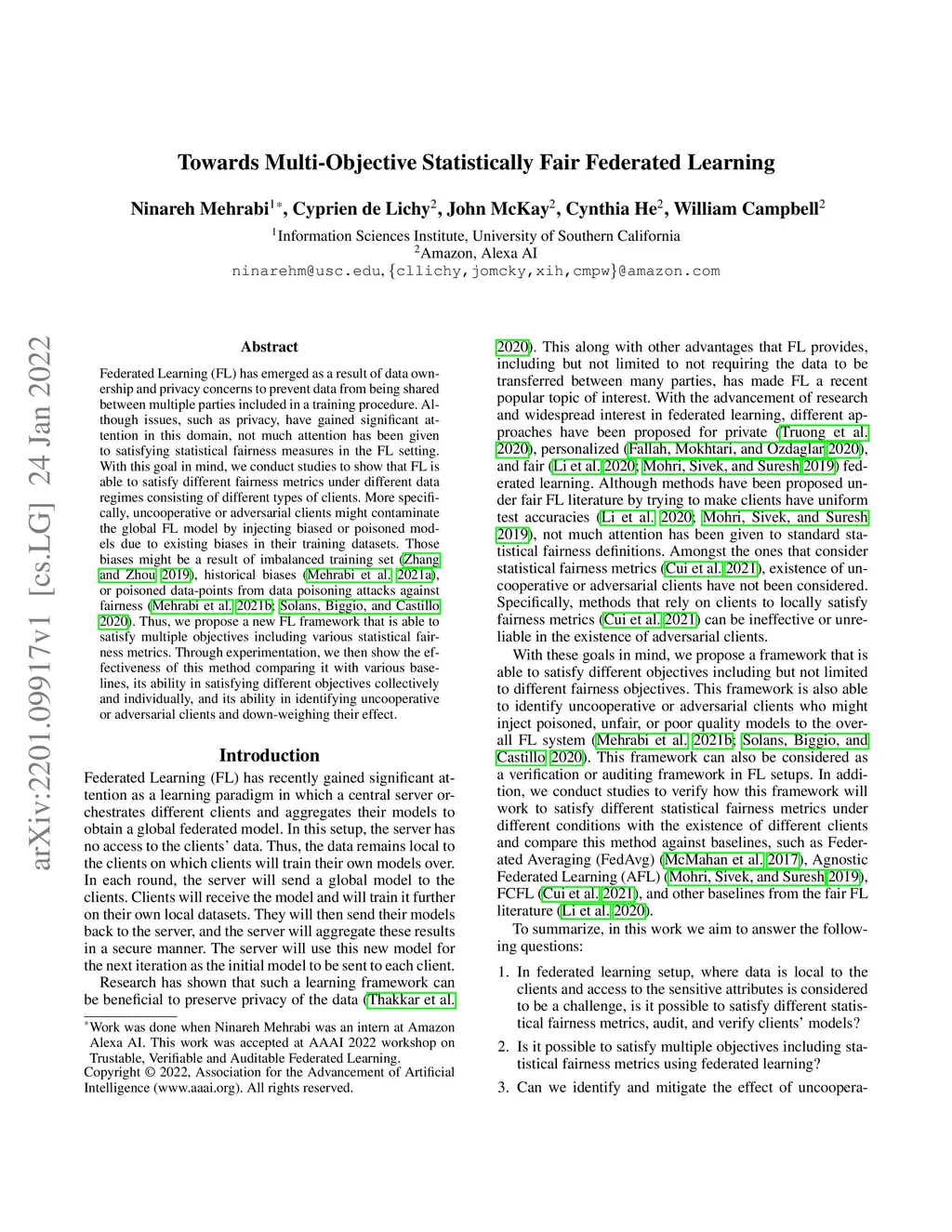 Federated Learning (FL) has emerged as a result of data ownership and privacy concerns to prevent data from being shared between multiple parties included in a training procedure. Although issues, such as privacy, have gained significant attention in this domain, not much attention has been given to satisfying statistical fairness measures in the FL setting. With this goal in mind, we conduct studies to show that FL is able to satisfy different fairness metrics under different data regimes consisting of different types of clients. More specifically, uncooperative or adversarial clients might contaminate the global FL model by injecting biased or poisoned models due to existing biases in their training datasets. Those biases might be a result of imbalanced training set (Zhang and Zhou 2019), historical biases (Mehrabi et al. 2021a), or poisoned data-points from data poisoning attacks against fairness (Mehrabi et al. 2021b; Solans, Biggio, and Castillo 2020). Thus, we propose a new FL framework that is able to satisfy multiple objectives including various statistical fairness metrics. Through experimentation, we then show the effectiveness of this method comparing it with various baselines, its ability in satisfying different objectives collectively and individually, and its ability in identifying uncooperative or adversarial clients and down-weighing their effect