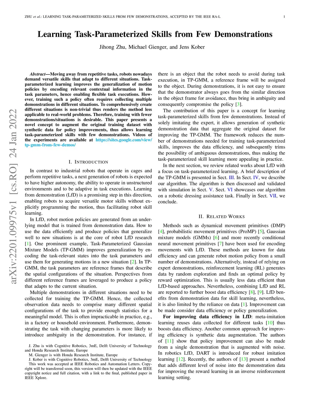 Learning Task-Parameterized Skills from Few Demonstrations