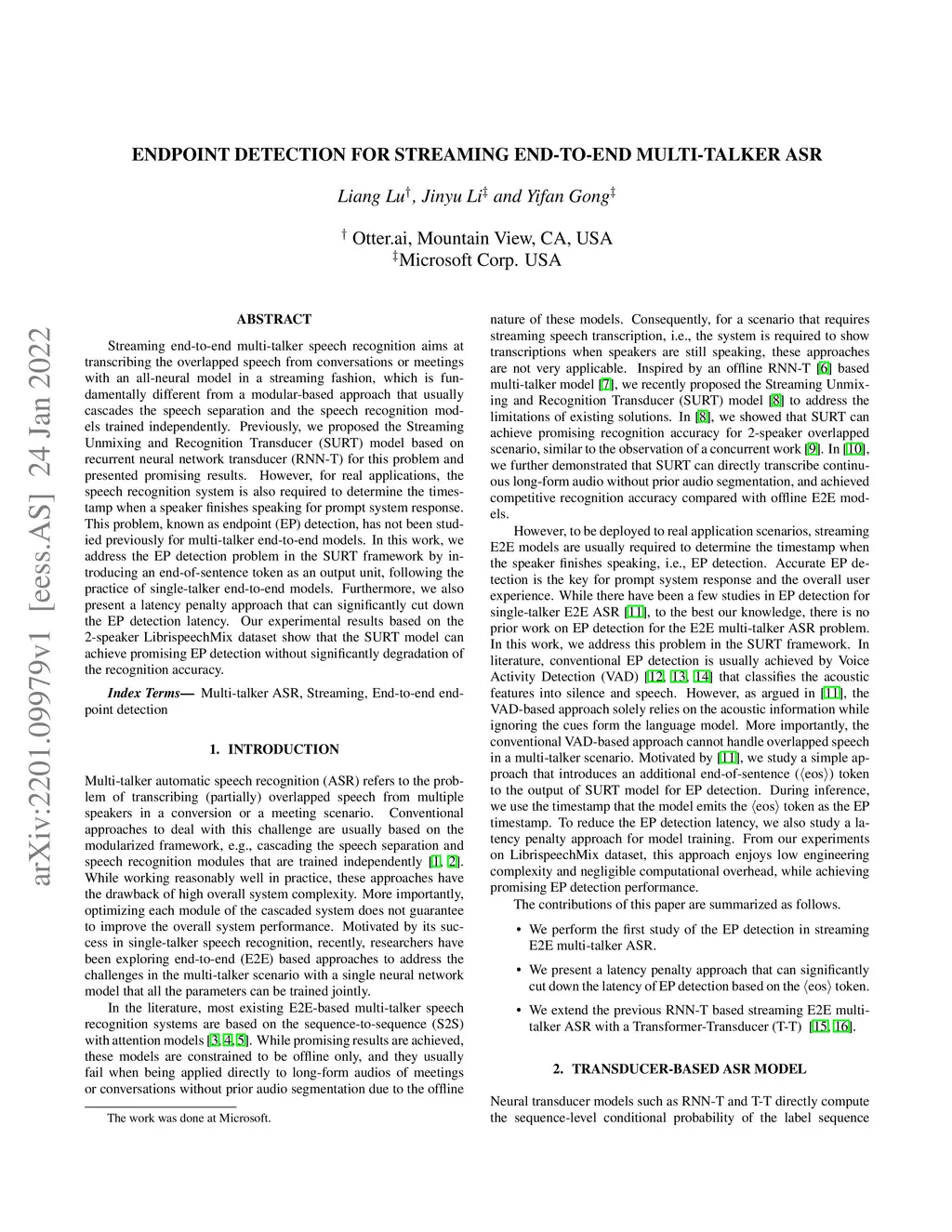 Streaming end-to-end multi-talker speech recognition aims at transcribing the overlapped speech from conversations or meetings with an all-neural model in a streaming fashion, which is fundamentally different from a modular-based approach that usually cascades the speech separation and the speech recognition models trained independently. Previously, we proposed the Streaming Unmixing and Recognition Transducer (SURT) model based on recurrent neural network transducer (RNN-T) for this problem and presented promising results. However, for real applications, the speech recognition system is also required to determine the timestamp when a speaker finishes speaking for prompt system response. This problem, known as endpoint (EP) detection, has not been studied previously for multi-talker end-to-end models. In this work, we address the EP detection problem in the SURT framework by introducing an end-of-sentence token as an output unit, following the practice of single-talker end-to-end models. Furthermore, we also present a latency penalty approach that can significantly cut down the EP detection latency. Our experimental results based on the 2-speaker LibrispeechMix dataset show that the SURT model can achieve promising EP detection without significantly degradation of the recognition accuracy.