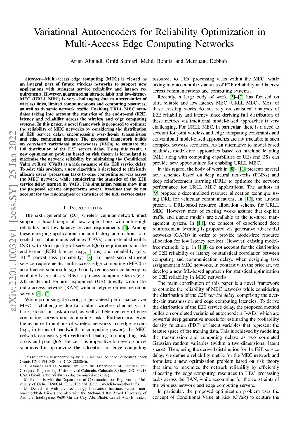 Multi-access edge computing (MEC) is viewed as an integral part of future wireless networks to support new applications with stringent service reliability and latency requirements. However, guaranteeing ultra-reliable and low-latency MEC (URLL MEC) is very challenging due to uncertainties of wireless links, limited communications and computing resources, as well as dynamic network traffic. Enabling URLL MEC mandates taking into account the statistics of the end-to-end (E2E) latency and reliability across the wireless and edge computing systems. In this paper, a novel framework is proposed to optimize the reliability of MEC networks by considering the distribution of E2E service delay, encompassing over-the-air transmission and edge computing latency. The proposed framework builds on correlated variational autoencoders (VAEs) to estimate the full distribution of the E2E service delay. Using this result, a new optimization problem based on risk theory is formulated to maximize the network reliability by minimizing the Conditional Value at Risk (CVaR) as a risk measure of the E2E service delay. To solve this problem, a new algorithm is developed to efficiently allocate users' processing tasks to edge computing servers across the MEC network, while considering the statistics of the E2E service delay learned by VAEs. The simulation results show that the proposed scheme outperforms several baselines that do not account for the risk analyses or statistics of the E2E service delay.