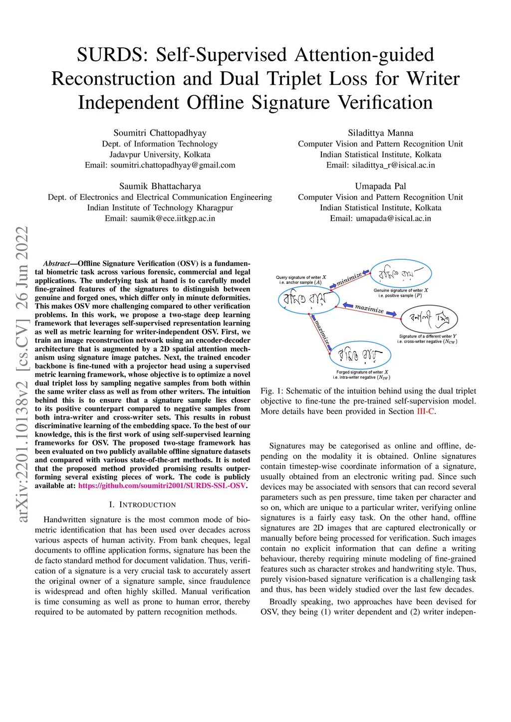 Loss for Writer Independent Offline Signature Verification