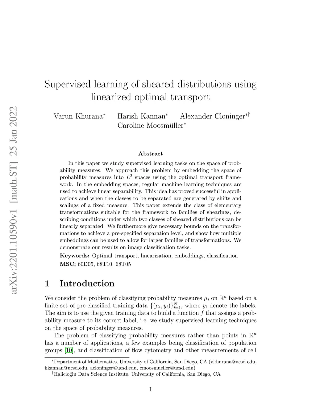 Supervised learning of sheared distributions using linearized optimal