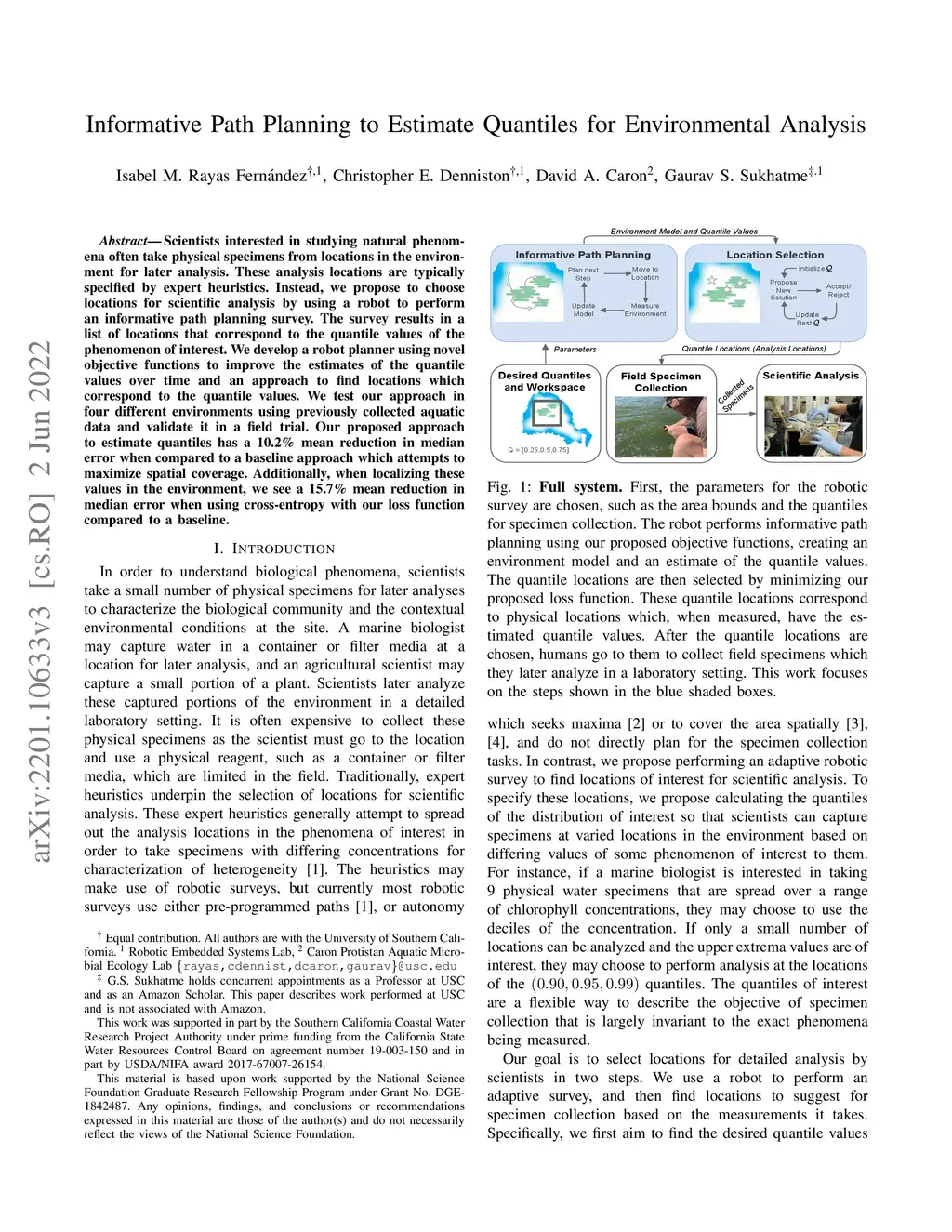 Scientists interested in studying natural phenomena often take physical specimens from locations in the environment for later analysis. These analysis locations are typically specified by expert heuristics. Instead, we propose to choose locations for scientific analysis by using a robot to perform an informative path planning survey. The survey results in a list of locations that correspond to the quantile values of the phenomenon of interest. We develop a robot planner using novel objective functions to improve the estimates of the quantile values over time and an approach to find locations which correspond to the quantile values. We test our approach in four different environments using previously collected aquatic data and validate it in a field trial. Our proposed approach to estimate quantiles has a 10.2% mean reduction in median error when compared to a baseline approach which attempts to maximize spatial coverage. Additionally, when localizing these values in the environment, we see a 15.7% mean reduction in median error when using cross-entropy with our loss function compared to a baseline.