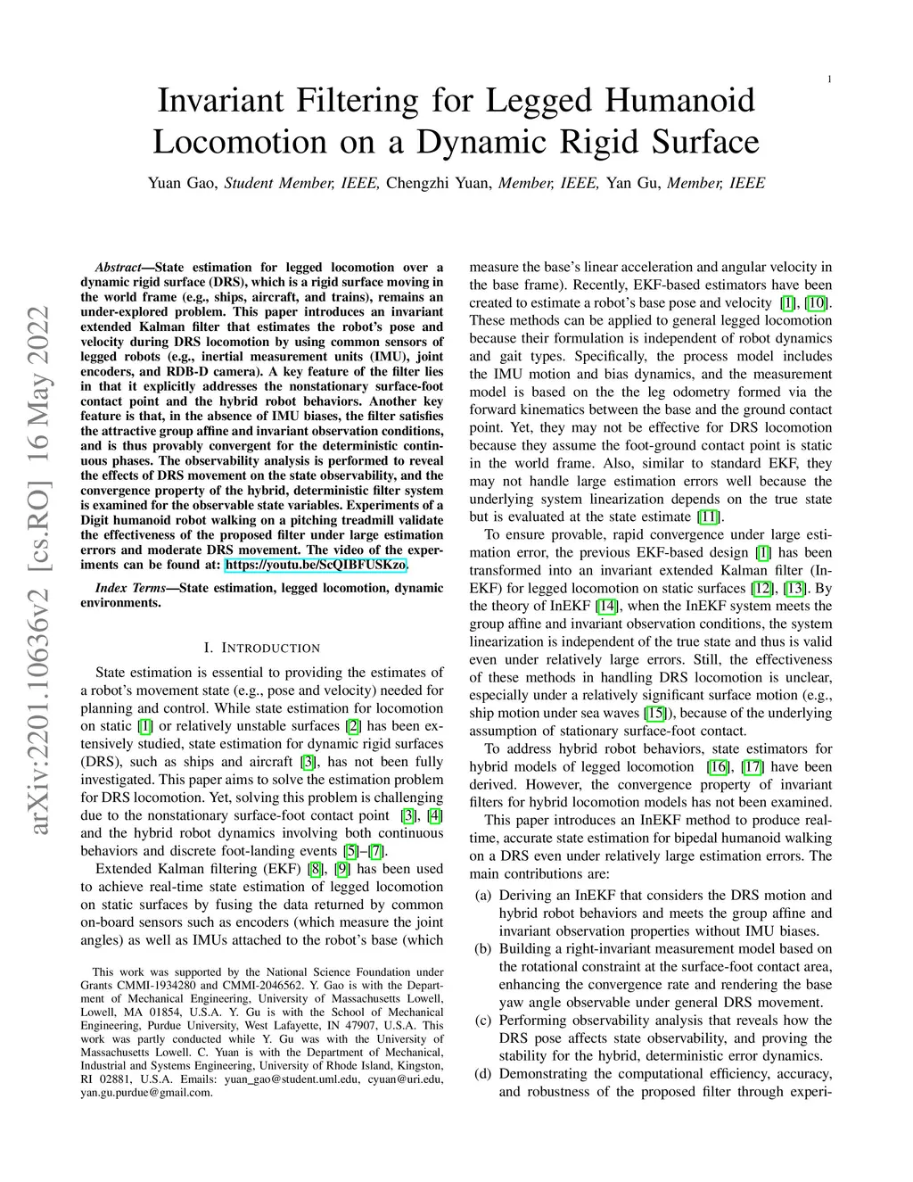 Invariant Filtering for Legged Humanoid Locomotion on Dynamic Rigid