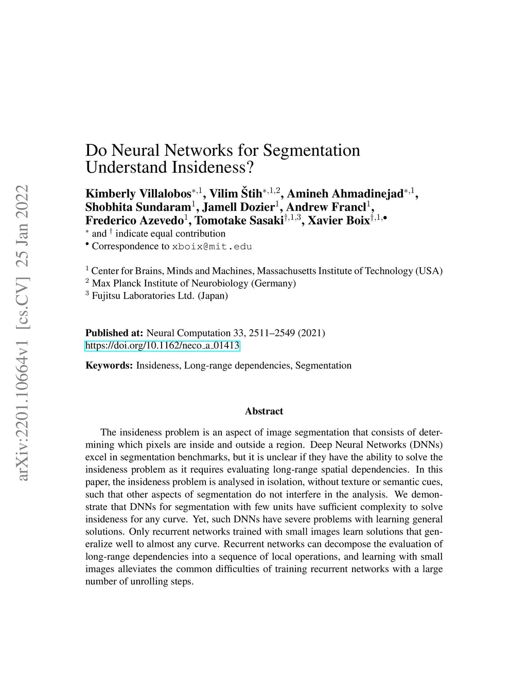 Do Neural Networks for Segmentation Understand Insideness?