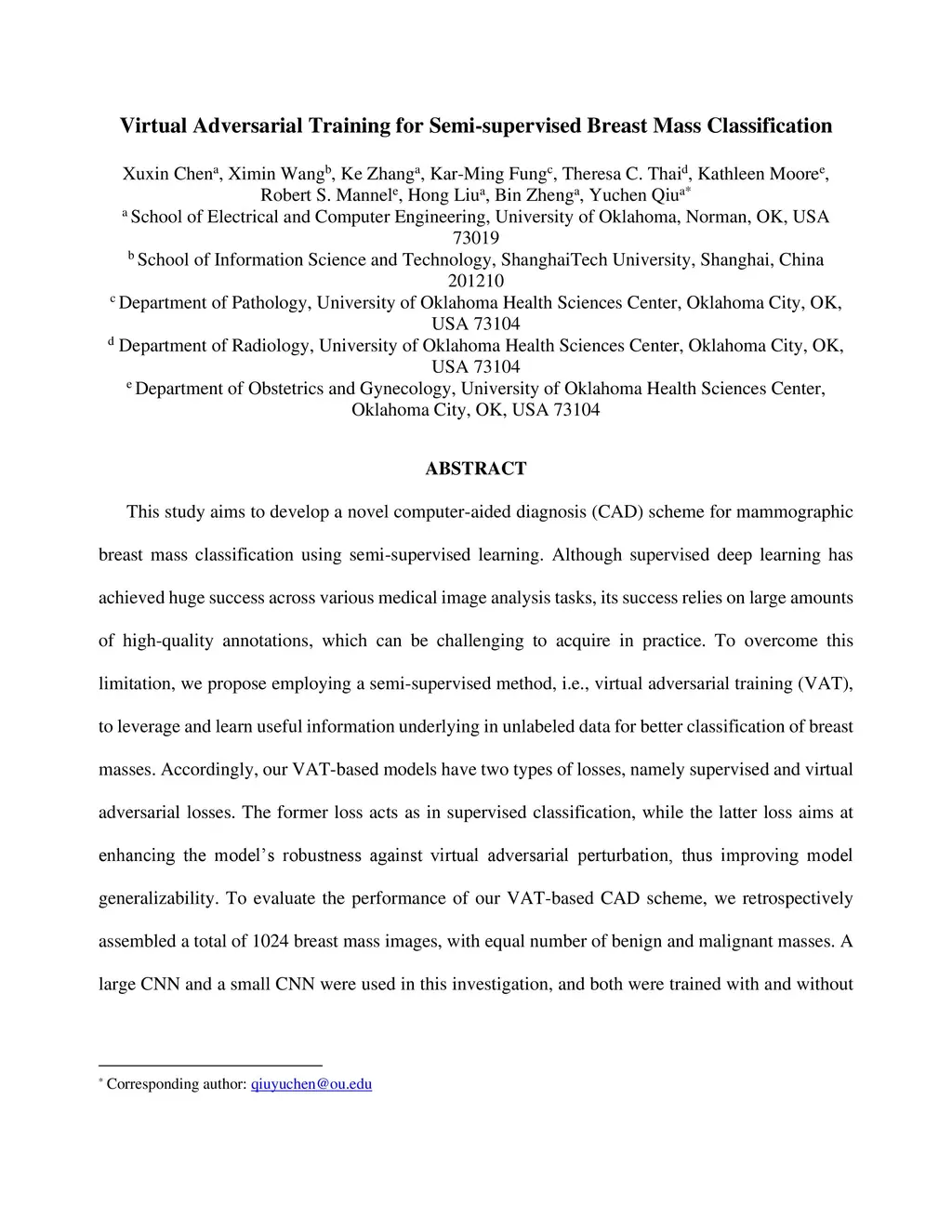 Virtual Adversarial Training for Semi-supervised Breast Mass