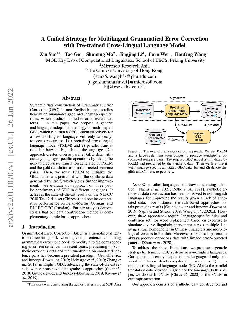 A Unified Strategy for Multilingual Grammatical Error Correction with