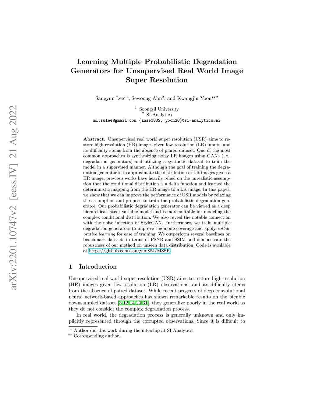 Learning Multiple Probabilistic Degradation Generators for Unsupervised