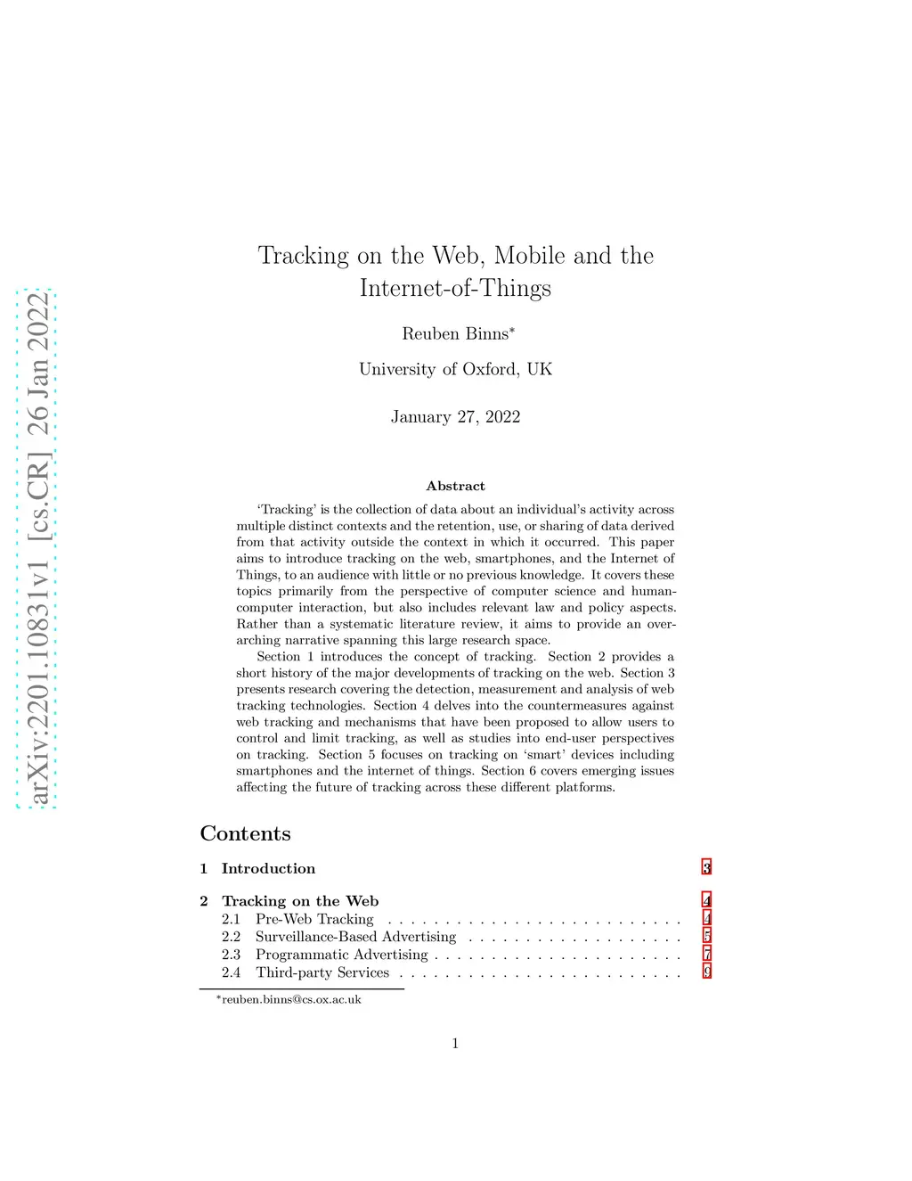 Tracking on the Web, Mobile and the Internet-of-Things