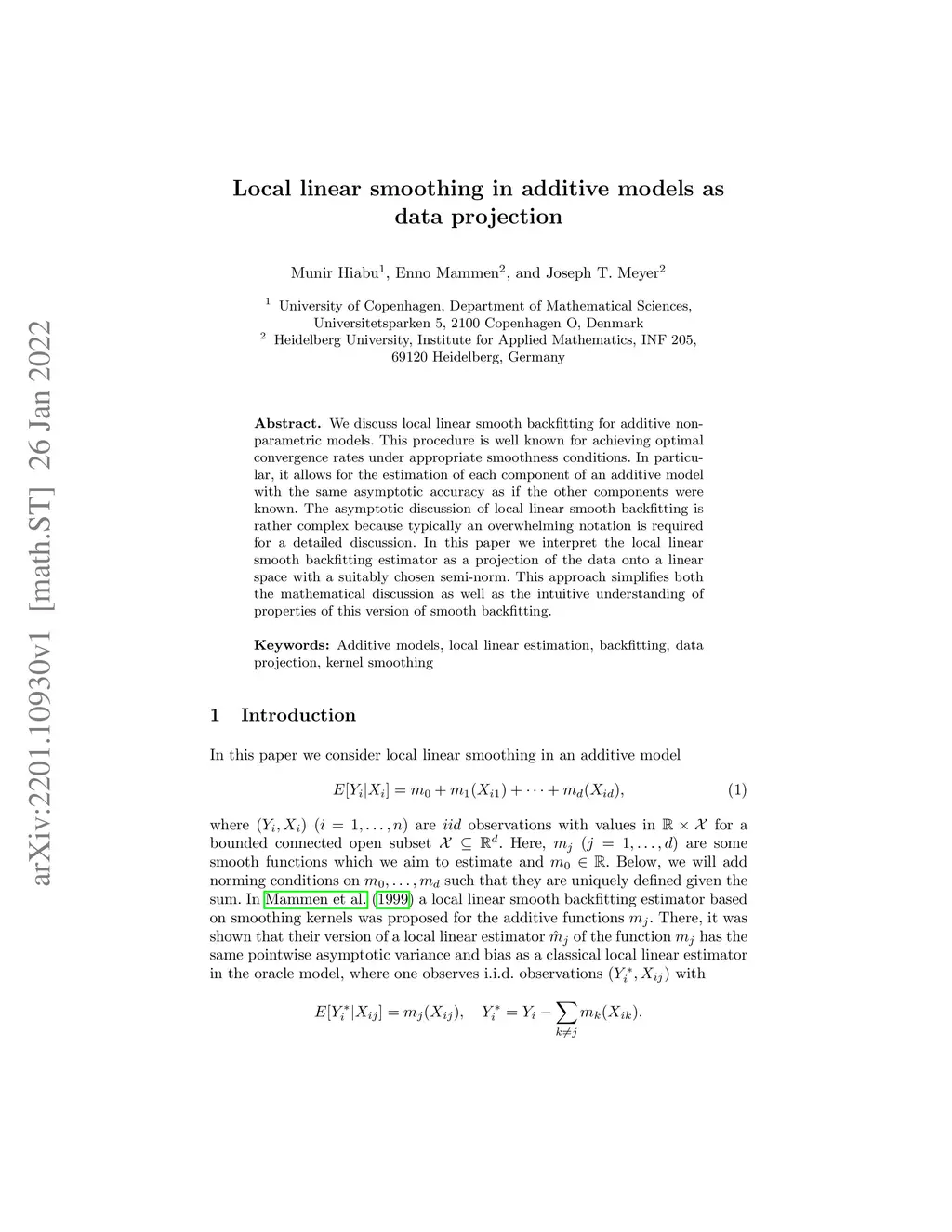 Local linear smoothing in additive models as data projection