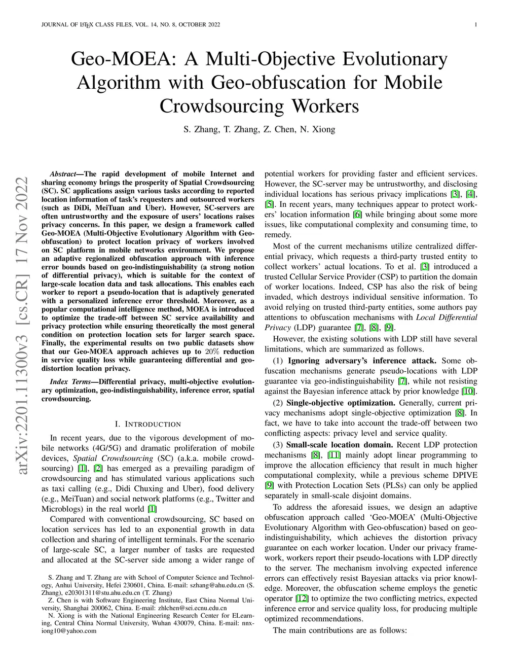 Geo-MOEA: A Multi-Objective Evolutionary Algorithm with Geo-obfuscation