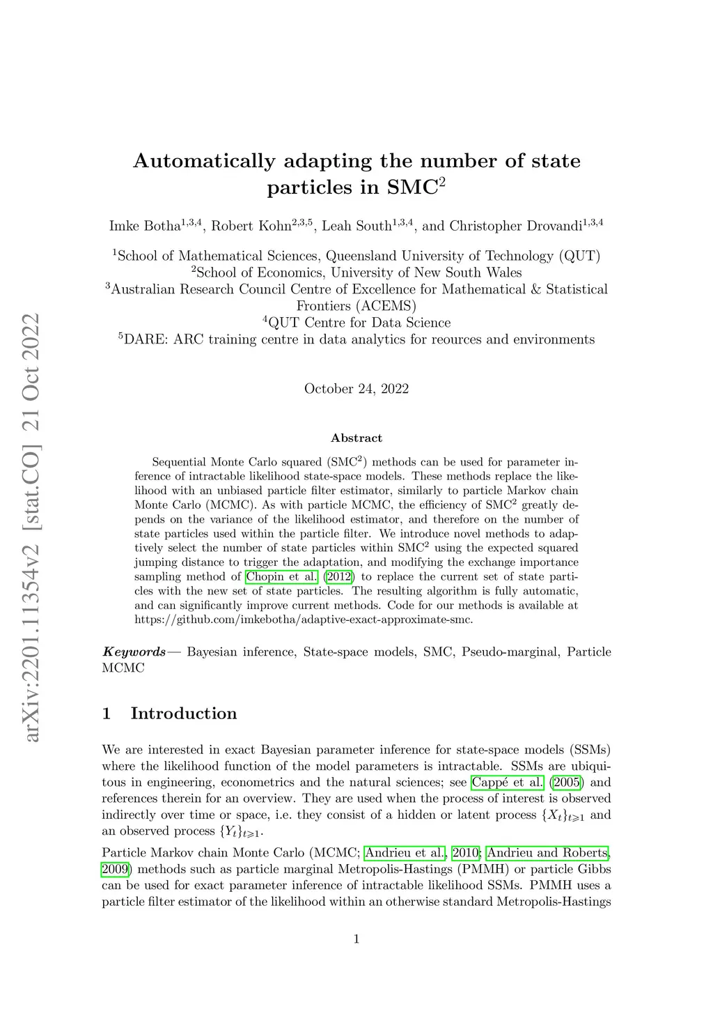 Sequential Monte Carlo squared (SMC) methods can be used for parameter inference of intractable likelihood state-space models. These methods replace the likelihood with an unbiased particle filter estimator, similarly to particle Markov chain Monte Carlo (MCMC). As with particle MCMC, the efficiency of SMC greatly depends on the variance of the likelihood estimator, and therefore on the number of state particles used within the particle filter. We introduce novel methods to adaptively select the number of state particles within SMC using the expected squared jumping distance to trigger the adaptation, and modifying the exchange importance sampling method of \citet{Chopin2012a} to replace the current set of state particles with the new set of state particles. The resulting algorithm is fully automatic, and can significantly improve current methods. Code for our methods is available at https://github.com/imkebotha/adaptive-exact-approximate-smc.