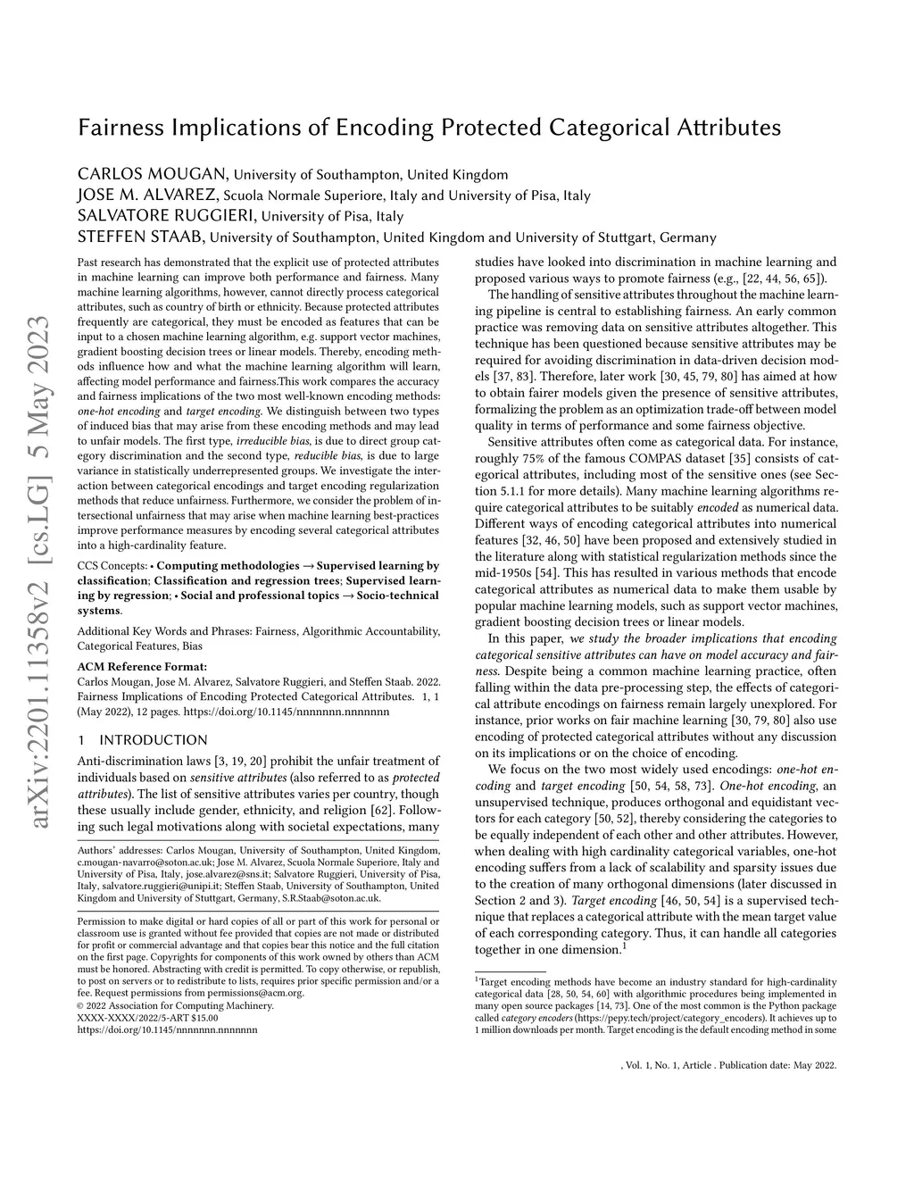 Fairness Implications of Encoding Protected Categorical Attributes