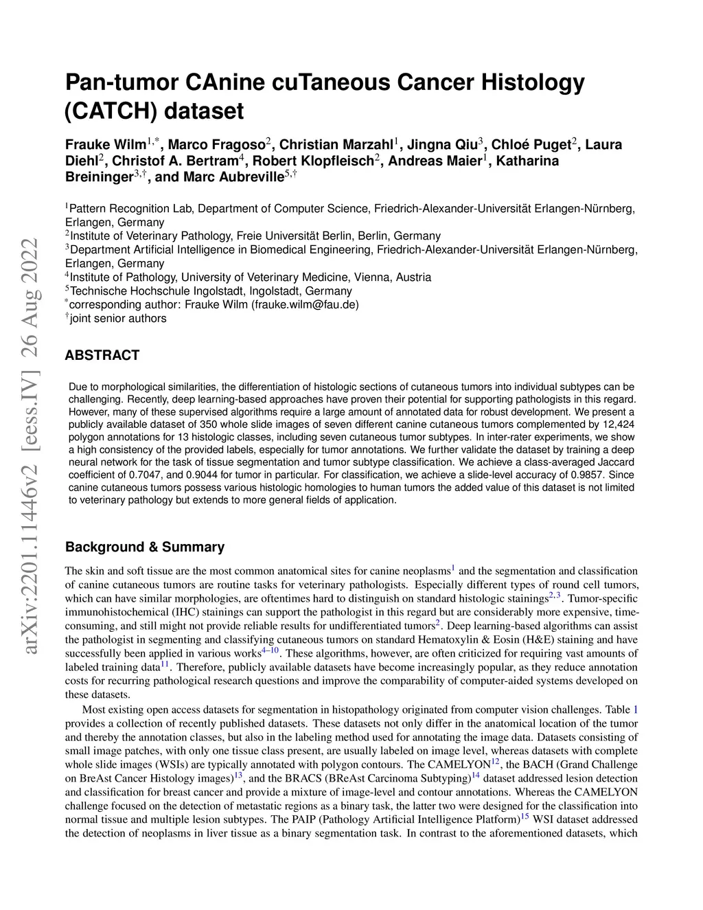 Pan-tumor CAnine cuTaneous Cancer Histology (CATCH) dataset