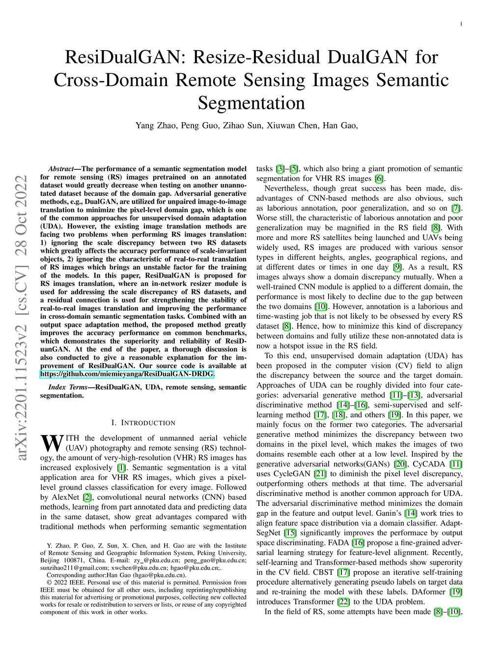 ResiDualGAN: Resize-Residual DualGAN for Cross-Domain Remote Sensing