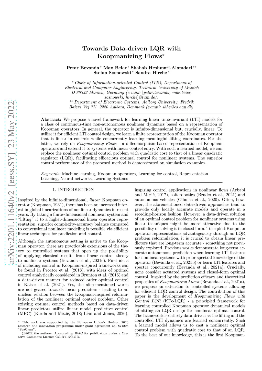 Towards Data-driven LQR with Koopmanizing Flows