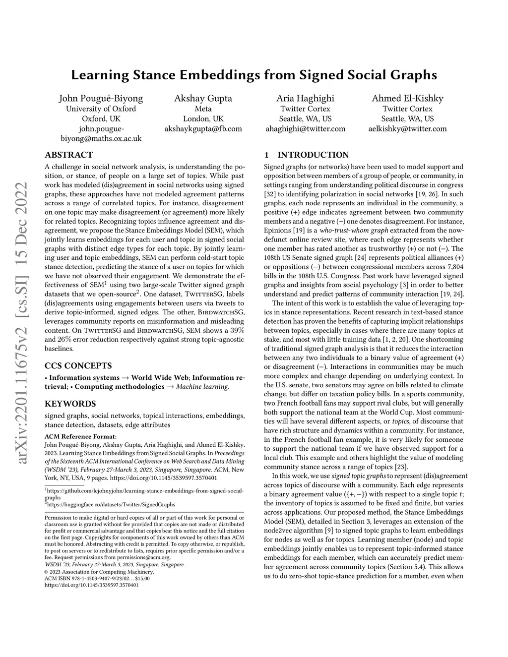 Learning Stance Embeddings from Signed Social Graphs
