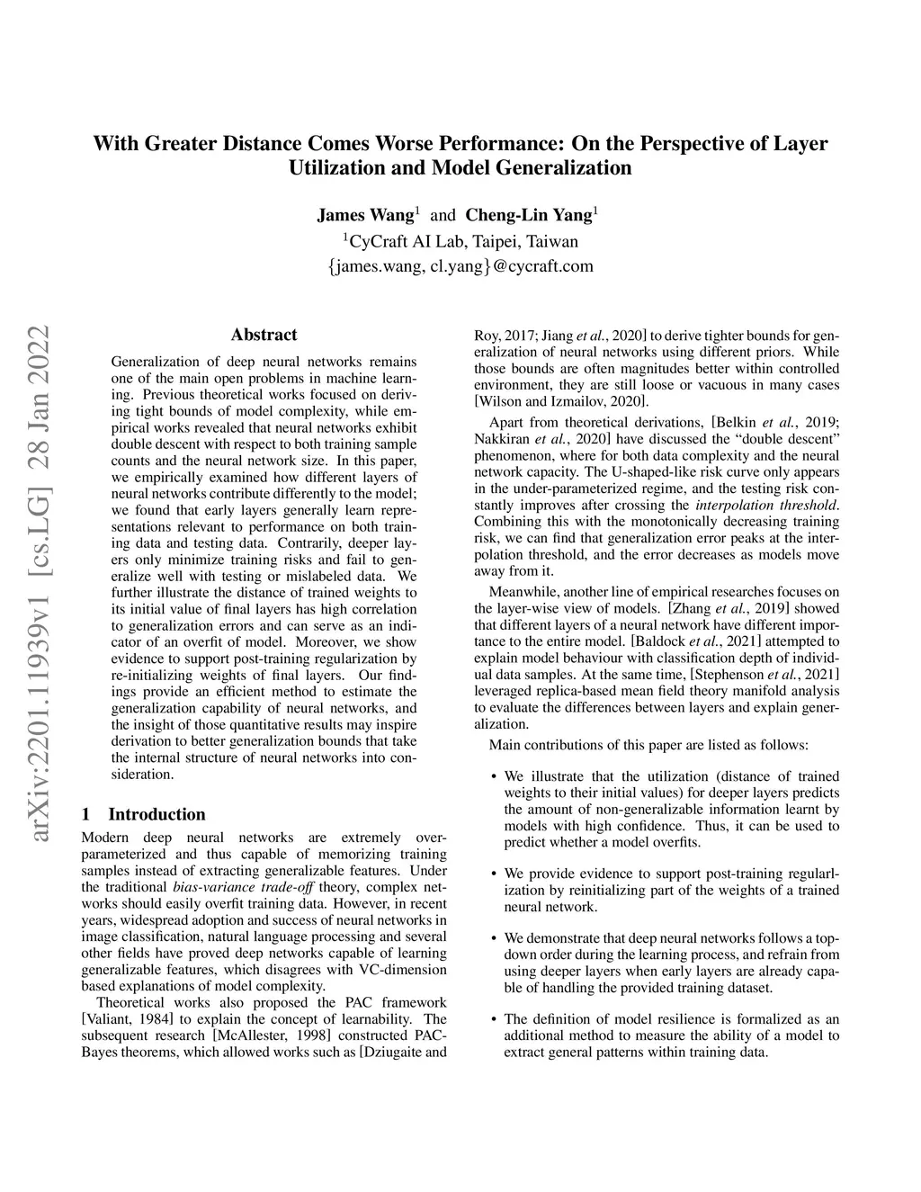 Generalization of deep neural networks remains one of the main open problems in machine learning. Previous theoretical works focused on deriving tight bounds of model complexity, while empirical works revealed that neural networks exhibit double descent with respect to both training sample counts and the neural network size. In this paper, we empirically examined how different layers of neural networks contribute differently to the model; we found that early layers generally learn representations relevant to performance on both training data and testing data. Contrarily, deeper layers only minimize training risks and fail to generalize well with testing or mislabeled data. We further illustrate the distance of trained weights to its initial value of final layers has high correlation to generalization errors and can serve as an indicator of an overfit of model. Moreover, we show evidence to support post-training regularization by re-initializing weights of final layers. Our findings provide an efficient method to estimate the generalization capability of neural networks, and the insight of those quantitative results may inspire derivation to better generalization bounds that take the internal structure of neural networks into consideration.