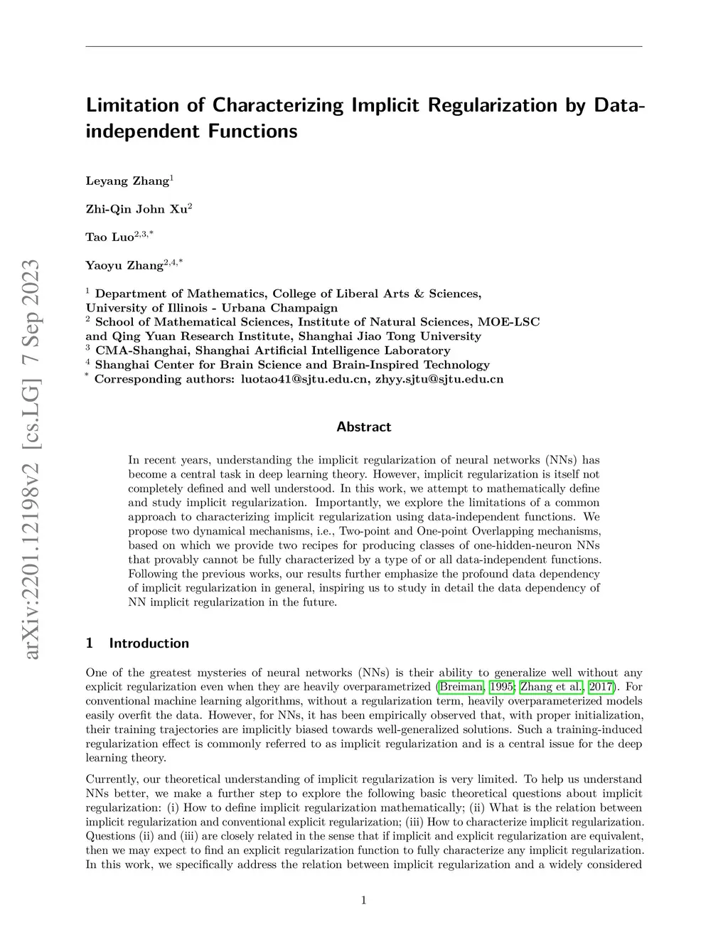 In recent years, understanding the implicit regularization of neural networks (NNs) has become a central task in deep learning theory. However, implicit regularization is itself not completely defined and well understood. In this work, we attempt to mathematically define and study implicit regularization. Importantly, we explore the limitations of a common approach to characterizing implicit regularization using data-independent functions. We propose two dynamical mechanisms, i.e., Two-point and One-point Overlapping mechanisms, based on which we provide two recipes for producing classes of one-hidden-neuron NNs that provably cannot be fully characterized by a type of or all data-independent functions. Following the previous works, our results further emphasize the profound data dependency of implicit regularization in general, inspiring us to study in detail the data dependency of NN implicit regularization in the future.