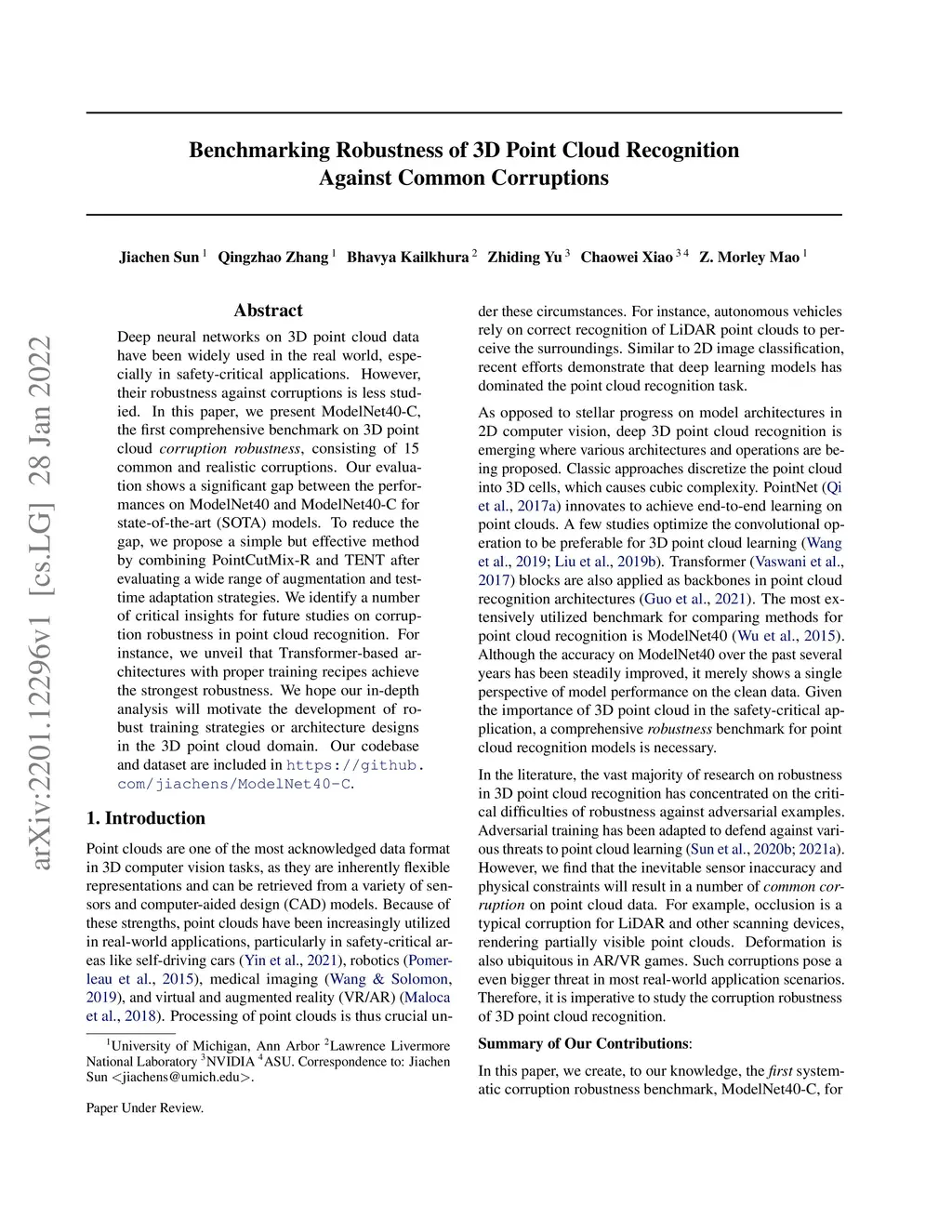 Deep neural networks on 3D point cloud data have been widely used in the real world, especially in safety-critical applications. However, their robustness against corruptions is less studied. In this paper, we present ModelNet40-C, the first comprehensive benchmark on 3D point cloud corruption robustness, consisting of 15 common and realistic corruptions. Our evaluation shows a significant gap between the performances on ModelNet40 and ModelNet40-C for state-of-the-art (SOTA) models. To reduce the gap, we propose a simple but effective method by combining PointCutMix-R and TENT after evaluating a wide range of augmentation and test-time adaptation strategies. We identify a number of critical insights for future studies on corruption robustness in point cloud recognition. For instance, we unveil that Transformer-based architectures with proper training recipes achieve the strongest robustness. We hope our in-depth analysis will motivate the development of robust training strategies or architecture designs in the 3D point cloud domain. Our codebase and dataset are included in https://github.com/jiachens/ModelNet40-C