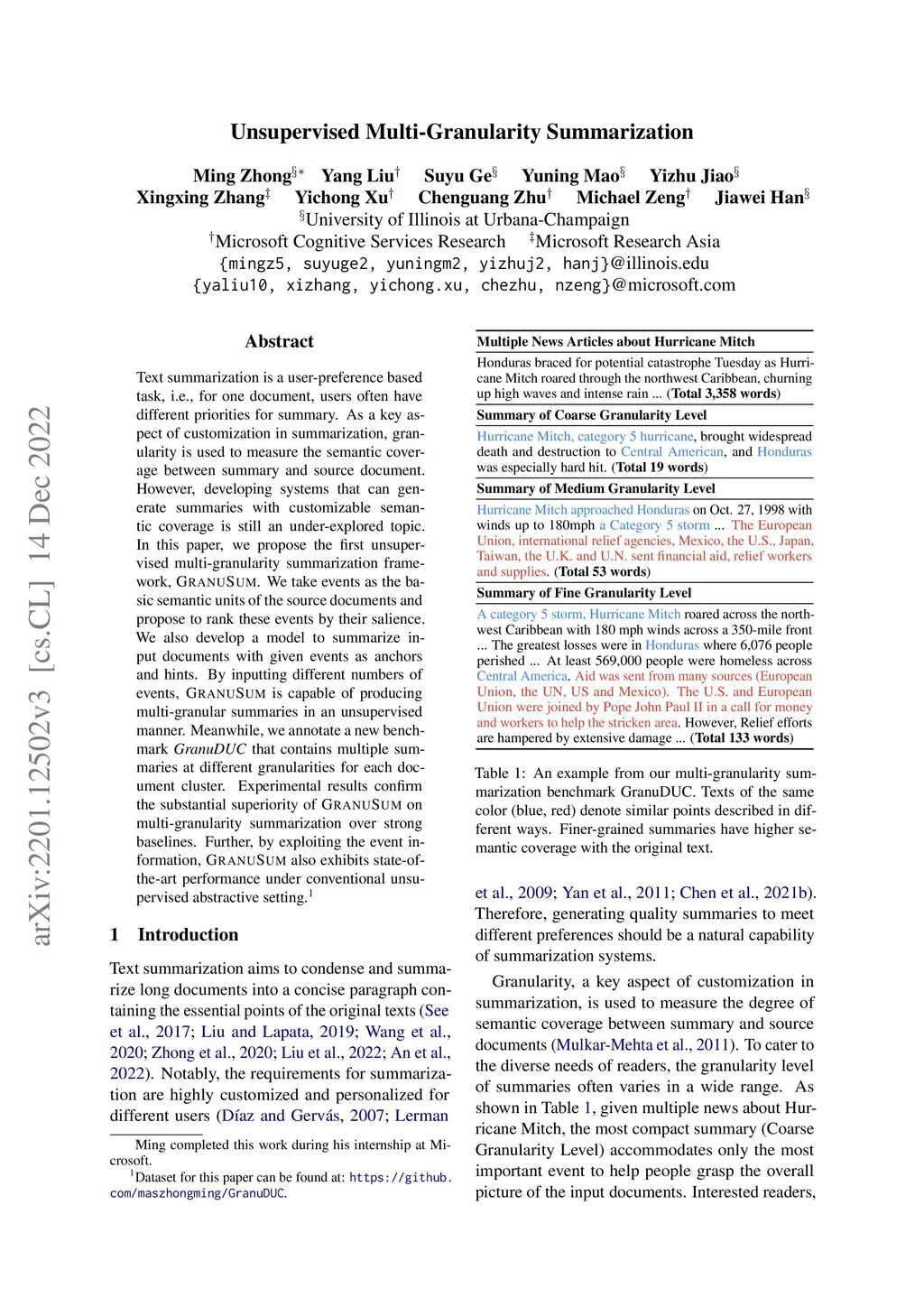 Unsupervised Multi-Granularity Summarization