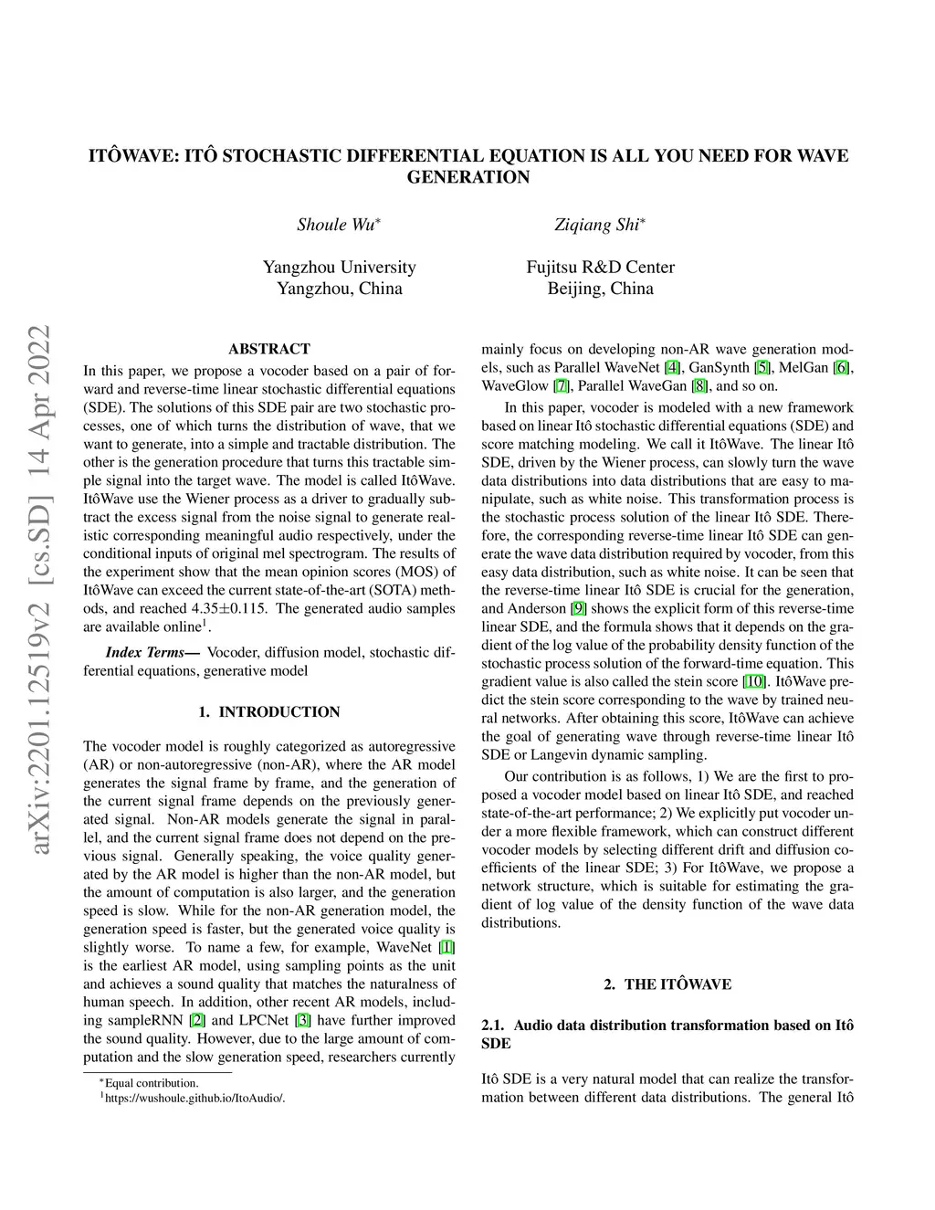 ItôWave: Itô Stochastic Differential Equation Is All You Need For
