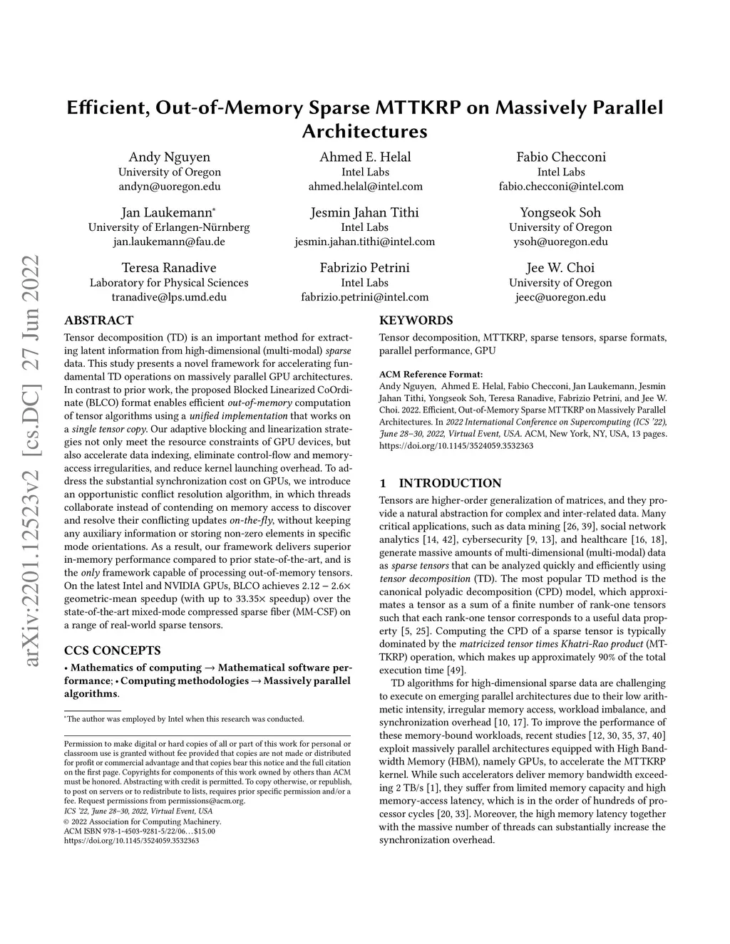 Efficient, Out-of-Memory Sparse MTTKRP on Massively Parallel