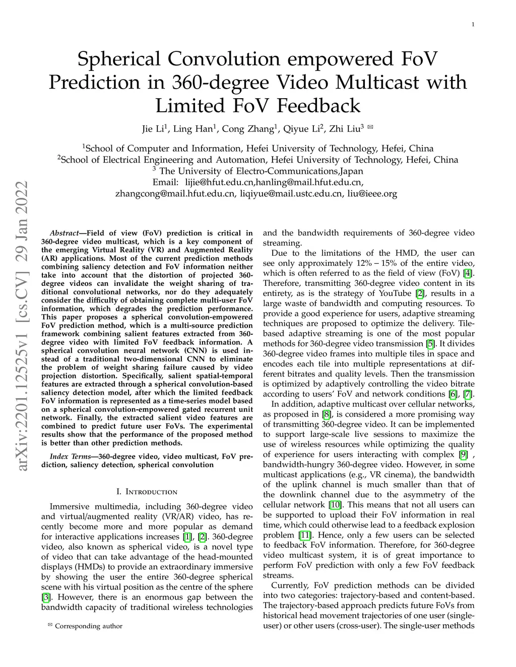 Field of view (FoV) prediction is critical in 360-degree video multicast, which is a key component of the emerging Virtual Reality (VR) and Augmented Reality (AR) applications. Most of the current prediction methods combining saliency detection and FoV information neither take into account that the distortion of projected 360-degree videos can invalidate the weight sharing of traditional convolutional networks, nor do they adequately consider the difficulty of obtaining complete multi-user FoV information, which degrades the prediction performance. This paper proposes a spherical convolution-empowered FoV prediction method, which is a multi-source prediction framework combining salient features extracted from 360-degree video with limited FoV feedback information. A spherical convolution neural network (CNN) is used instead of a traditional two-dimensional CNN to eliminate the problem of weight sharing failure caused by video projection distortion. Specifically, salient spatial-temporal features are extracted through a spherical convolution-based saliency detection model, after which the limited feedback FoV information is represented as a time-series model based on a spherical convolution-empowered gated recurrent unit network. Finally, the extracted salient video features are combined to predict future user FoVs. The experimental results show that the performance of the proposed method is better than other prediction methods.