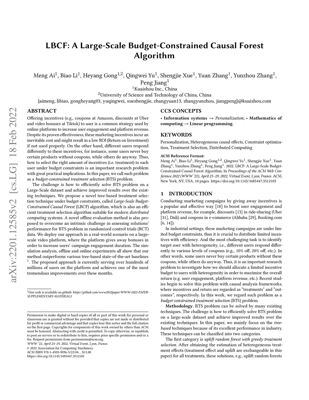 LBCF: A Large-Scale Budget-Constrained Causal Forest Algorithm