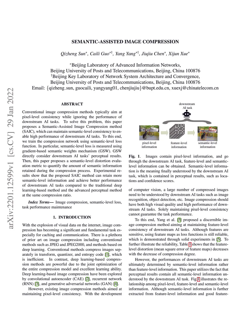 Conventional image compression methods typically aim at pixel-level consistency while ignoring the performance of downstream AI tasks.To solve this problem, this paper proposes a Semantic-Assisted Image Compression method (SAIC), which can maintain semantic-level consistency to enable high performance of downstream AI tasks.To this end, we train the compression network using semantic-level loss function. In particular, semantic-level loss is measured using gradient-based semantic weights mechanism (GSW). GSW directly consider downstream AI tasks' perceptual results. Then, this paper proposes a semantic-level distortion evaluation metric to quantify the amount of semantic information retained during the compression process. Experimental results show that the proposed SAIC method can retain more semantic-level information and achieve better performance of downstream AI tasks compared to the traditional deep learning-based method and the advanced perceptual method at the same compression ratio.