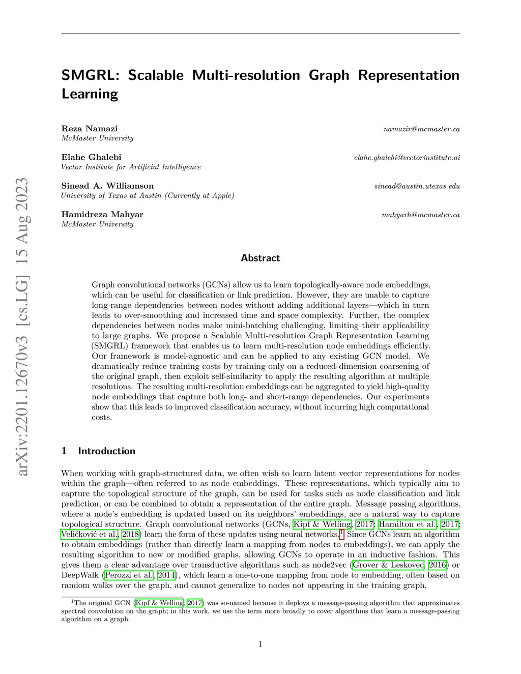 SMGRL: Scalable Multi-resolution Graph Representation Learning