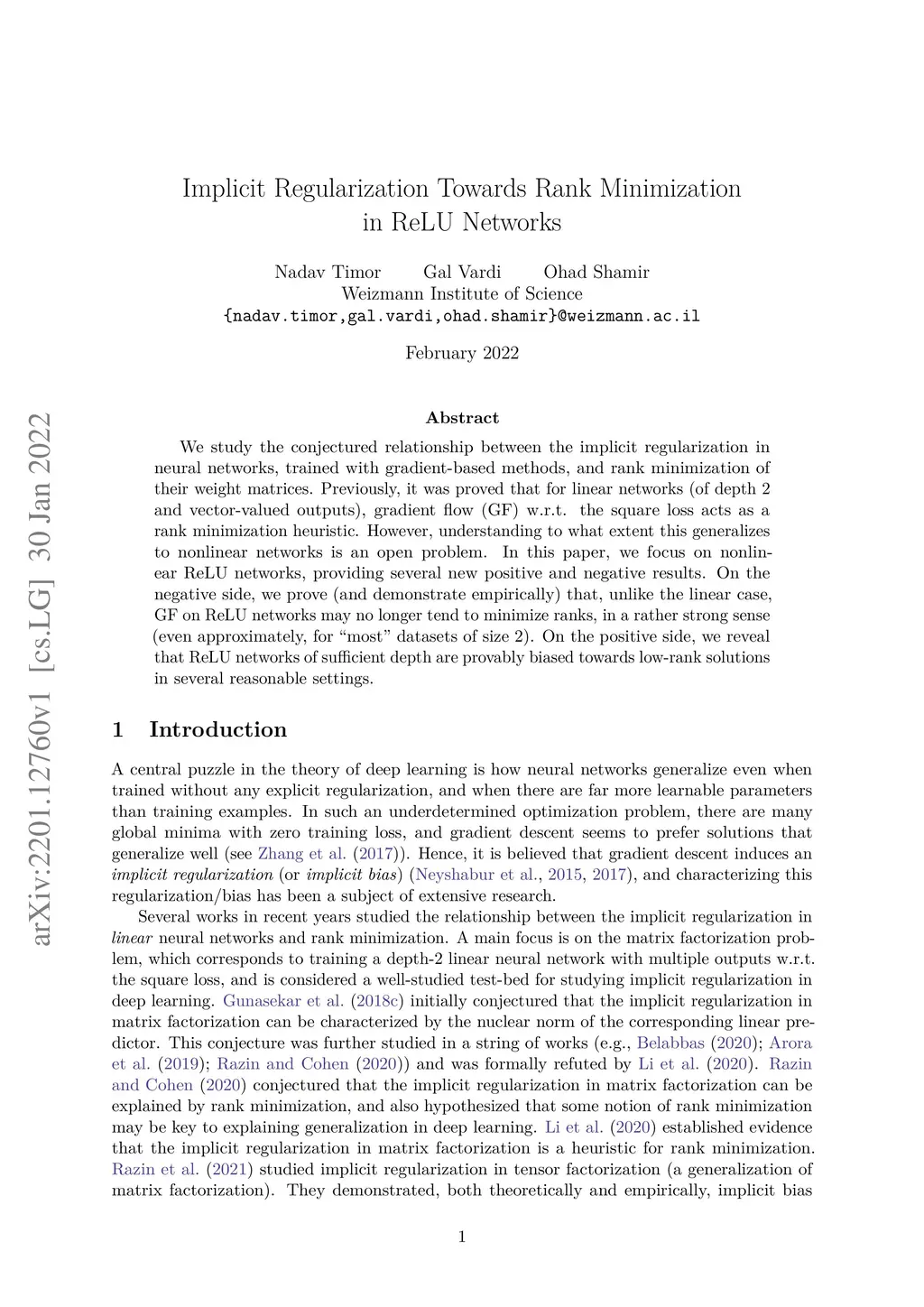 Implicit Regularization Towards Rank Minimization in ReLU Networks