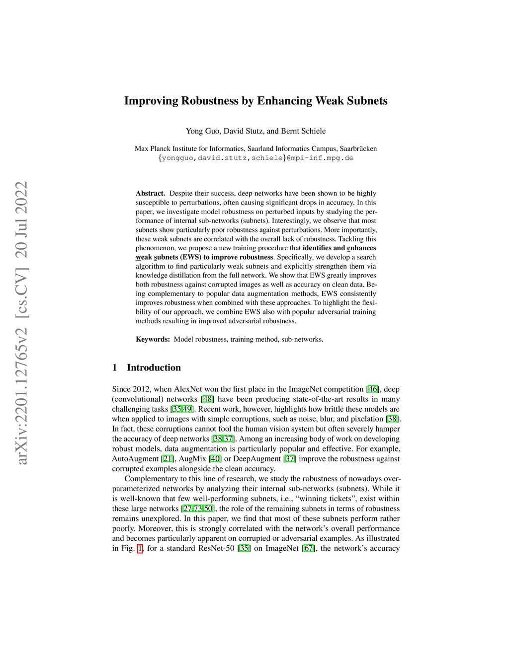 Despite their success, deep networks have been shown to be highly susceptible to perturbations, often causing significant drops in accuracy. In this paper, we investigate model robustness on perturbed inputs by studying the performance of internal sub-networks (subnets). Interestingly, we observe that most subnets show particularly poor robustness against perturbations. More importantly, these weak subnets are correlated with the overall lack of robustness. Tackling this phenomenon, we propose a new training procedure that identifies and enhances weak subnets (EWS) to improve robustness. Specifically, we develop a search algorithm to find particularly weak subnets and explicitly strengthen them via knowledge distillation from the full network. We show that EWS greatly improves both robustness against corrupted images as well as accuracy on clean data. Being complementary to popular data augmentation methods, EWS consistently improves robustness when combined with these approaches. To highlight the flexibility of our approach, we combine EWS also with popular adversarial training methods resulting in improved adversarial robustness.
