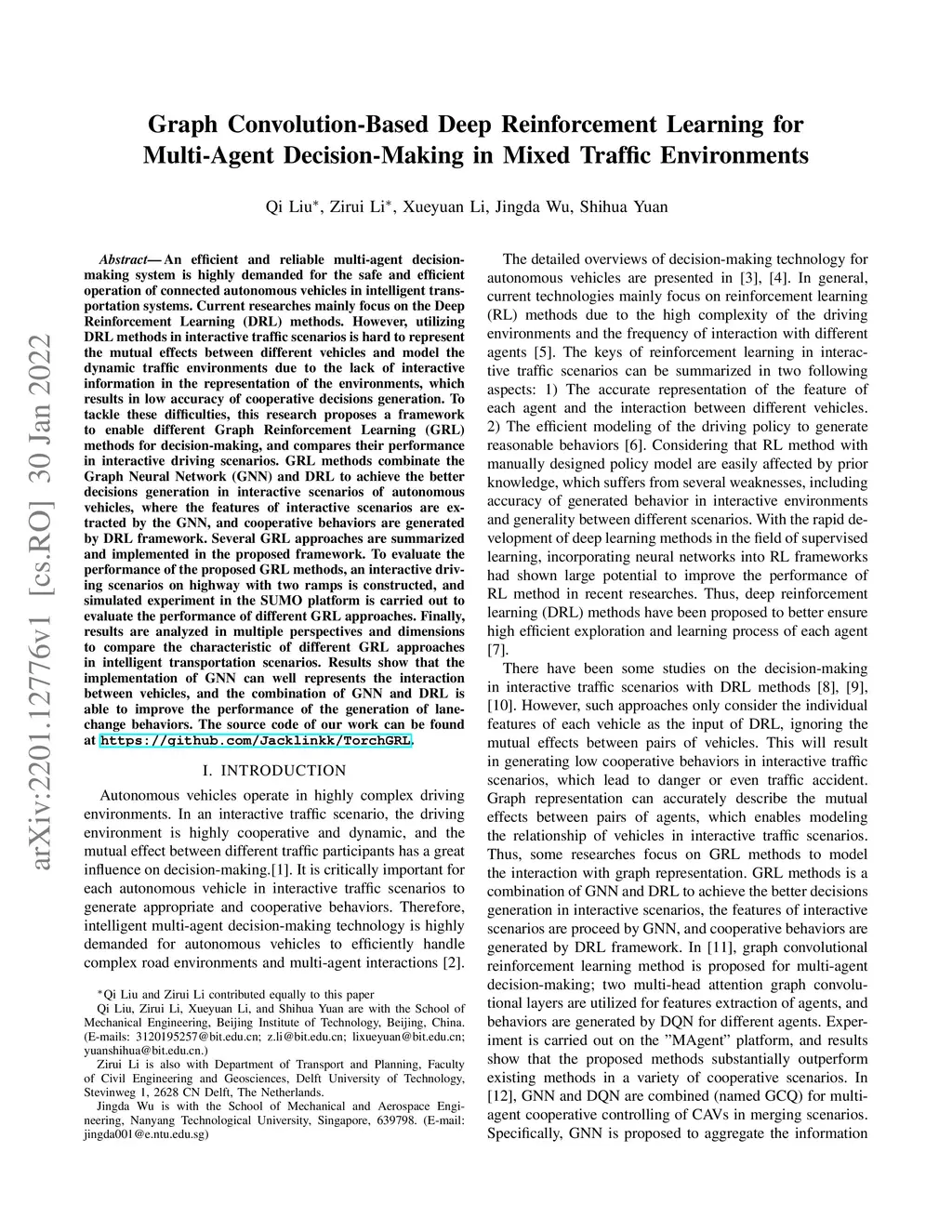An efficient and reliable multi-agent decision-making system is highly demanded for the safe and efficient operation of connected autonomous vehicles in intelligent transportation systems. Current researches mainly focus on the Deep Reinforcement Learning (DRL) methods. However, utilizing DRL methods in interactive traffic scenarios is hard to represent the mutual effects between different vehicles and model the dynamic traffic environments due to the lack of interactive information in the representation of the environments, which results in low accuracy of cooperative decisions generation. To tackle these difficulties, this research proposes a framework to enable different Graph Reinforcement Learning (GRL) methods for decision-making, and compares their performance in interactive driving scenarios. GRL methods combinate the Graph Neural Network (GNN) and DRL to achieve the better decisions generation in interactive scenarios of autonomous vehicles, where the features of interactive scenarios are extracted by the GNN, and cooperative behaviors are generated by DRL framework. Several GRL approaches are summarized and implemented in the proposed framework. To evaluate the performance of the proposed GRL methods, an interactive driving scenarios on highway with two ramps is constructed, and simulated experiment in the SUMO platform is carried out to evaluate the performance of different GRL approaches. Finally, results are analyzed in multiple perspectives and dimensions to compare the characteristic of different GRL approaches in intelligent transportation scenarios. Results show that the implementation of GNN can well represents the interaction between vehicles, and the combination of GNN and DRL is able to improve the performance of the generation of lane-change behaviors. The source code of our work can be found at https://github.com/Jacklinkk/TorchGRL.