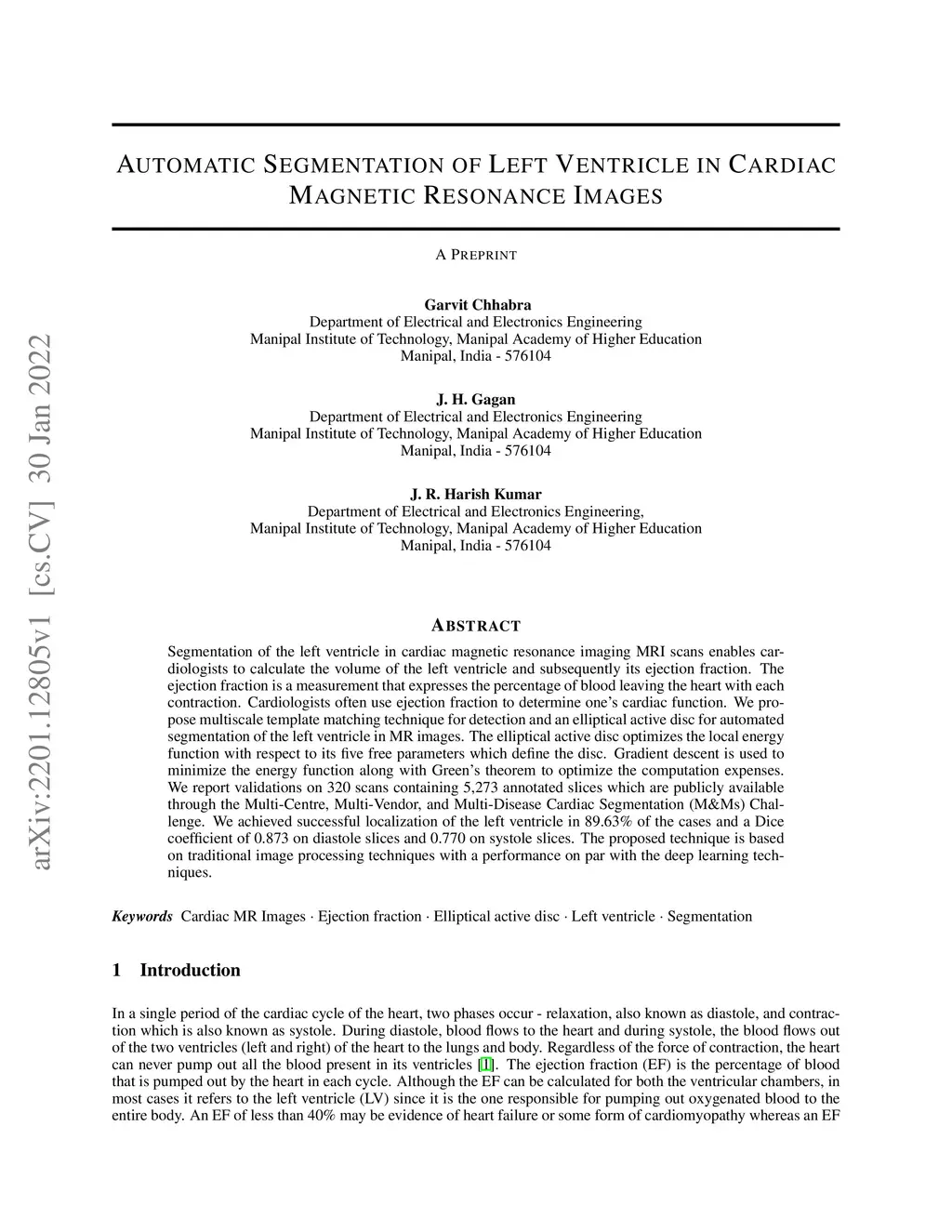 Automatic Segmentation of Left Ventricle in Cardiac Magnetic Resonance
