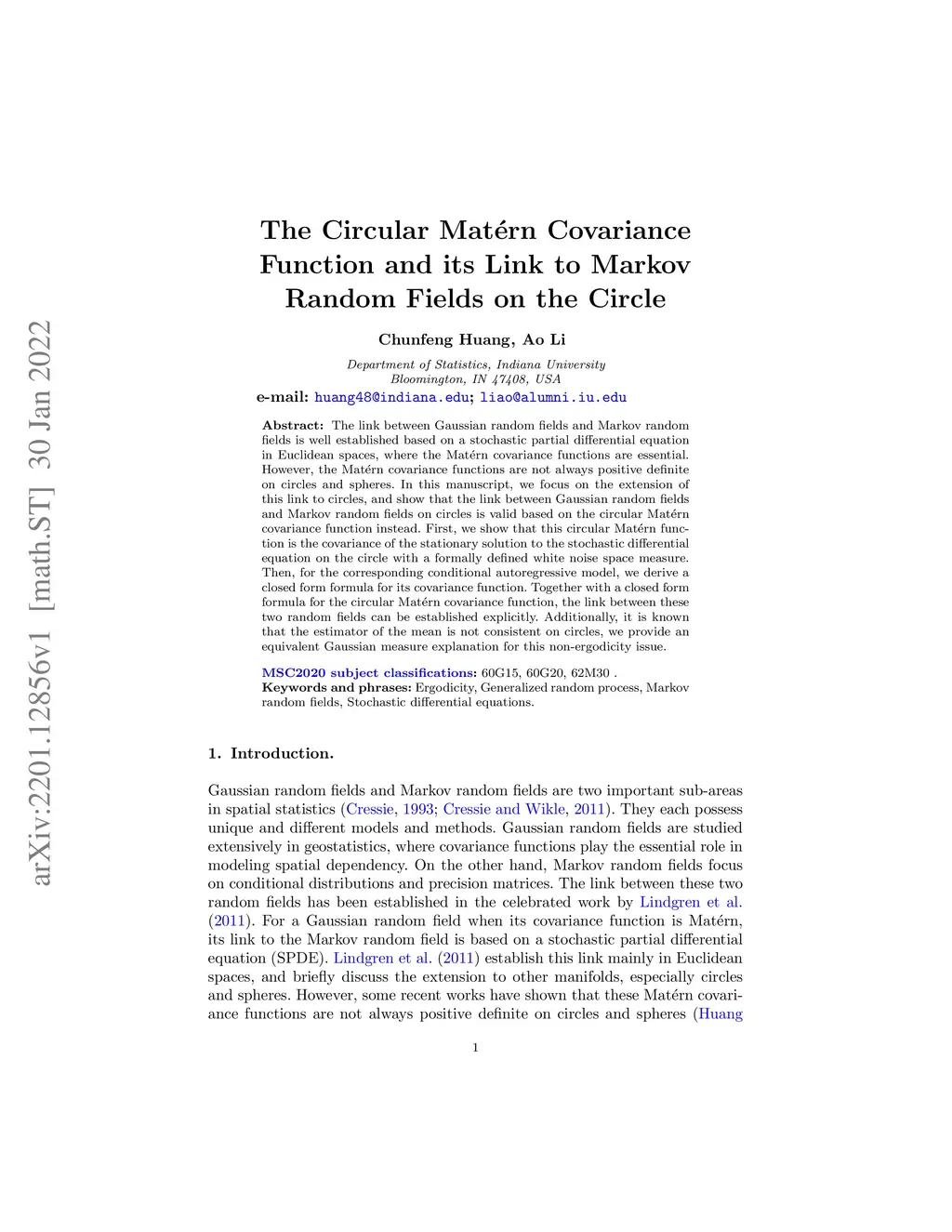 The Circular Matern Covariance Function and its Link to Markov Random