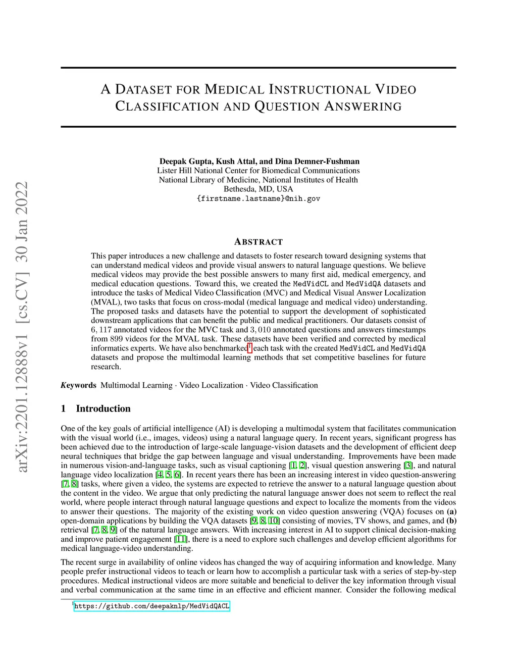 This paper introduces a new challenge and datasets to foster research toward designing systems that can understand medical videos and provide visual answers to natural language questions. We believe medical videos may provide the best possible answers to many first aids, medical emergency, and medical education questions. Toward this, we created the MedVidCL and MedVidQA datasets and introduce the tasks of Medical Video Classification (MVC) and Medical Visual Answer Localization (MVAL), two tasks that focus on cross-modal (medical language and medical video) understanding. The proposed tasks and datasets have the potential to support the development of sophisticated downstream applications that can benefit the public and medical practitioners. Our datasets consist of 6,117 annotated videos for the MVC task and 3,010 annotated questions and answers timestamps from 899 videos for the MVAL task. These datasets have been verified and corrected by medical informatics experts. We have also benchmarked each task with the created MedVidCL and MedVidQA datasets and proposed the multimodal learning methods that set competitive baselines for future research.